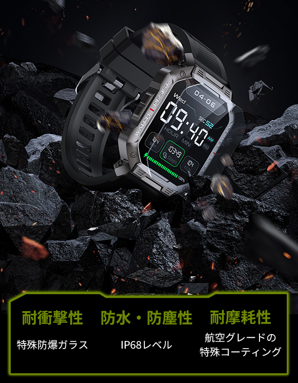 IP68級の防水及び防塵性能を持っており、日常生活の手洗いや雨、汗、水しぶきなどはもちろん、シャワーや水泳など様々なシーンで時計を付けたまま行動できます。