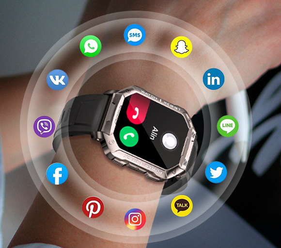 Bluetooth5.1が搭載され、通信範囲と転送速度が大幅に改良され、従来より省電力の上に、接続もより安定になります。Bluetoothで「KUMIWear」とスマホを簡単に同期することができます。LINE、Facebook、Instagram、Twitterなどに対応しています。