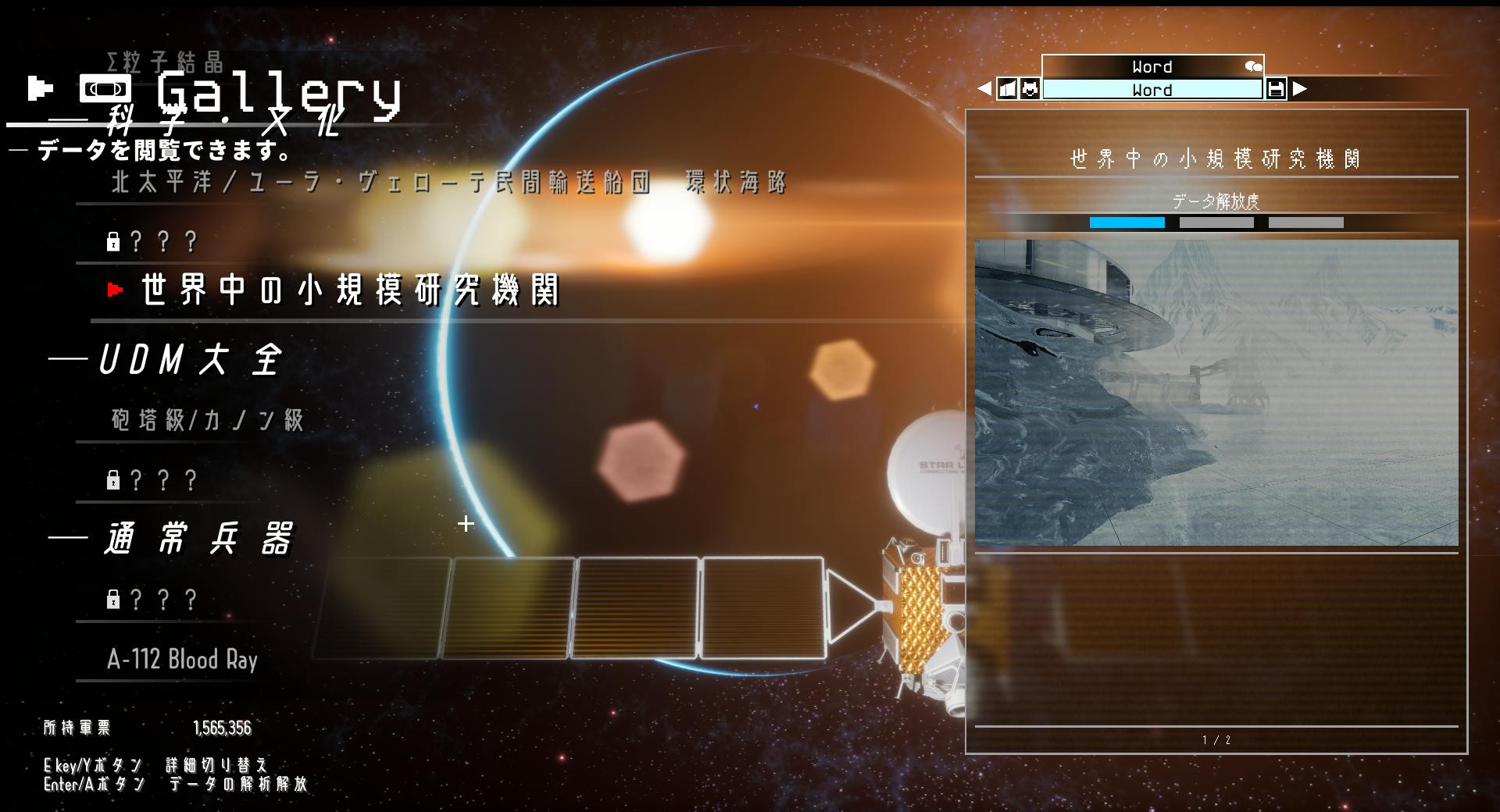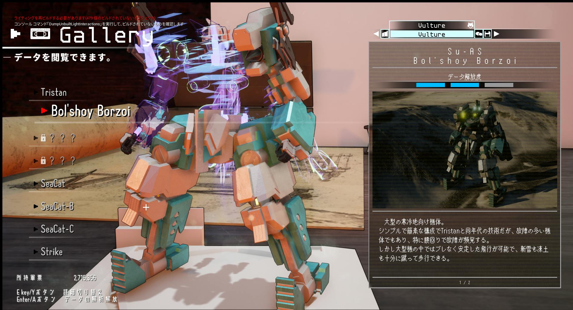 ・Vultureタブ。所持しているパーツの模型とデータを閲覧可能。軍票で追加データを開放。