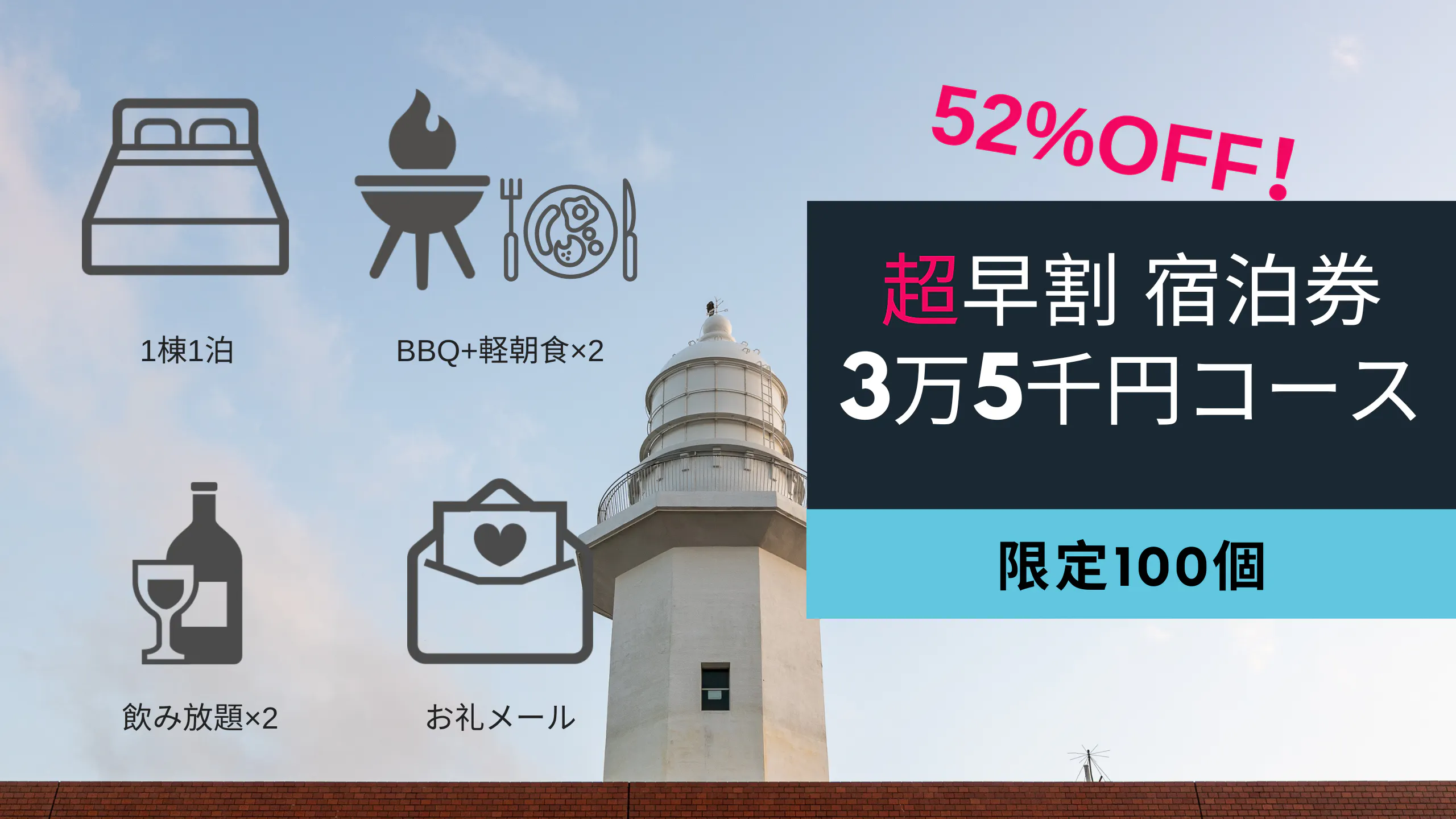 ・【超早割】CAMPFIRE限定のTAVISTAR宿泊+BBQ、軽朝食+飲み放題(2名分) 73,800円→【35,000円】限定100個