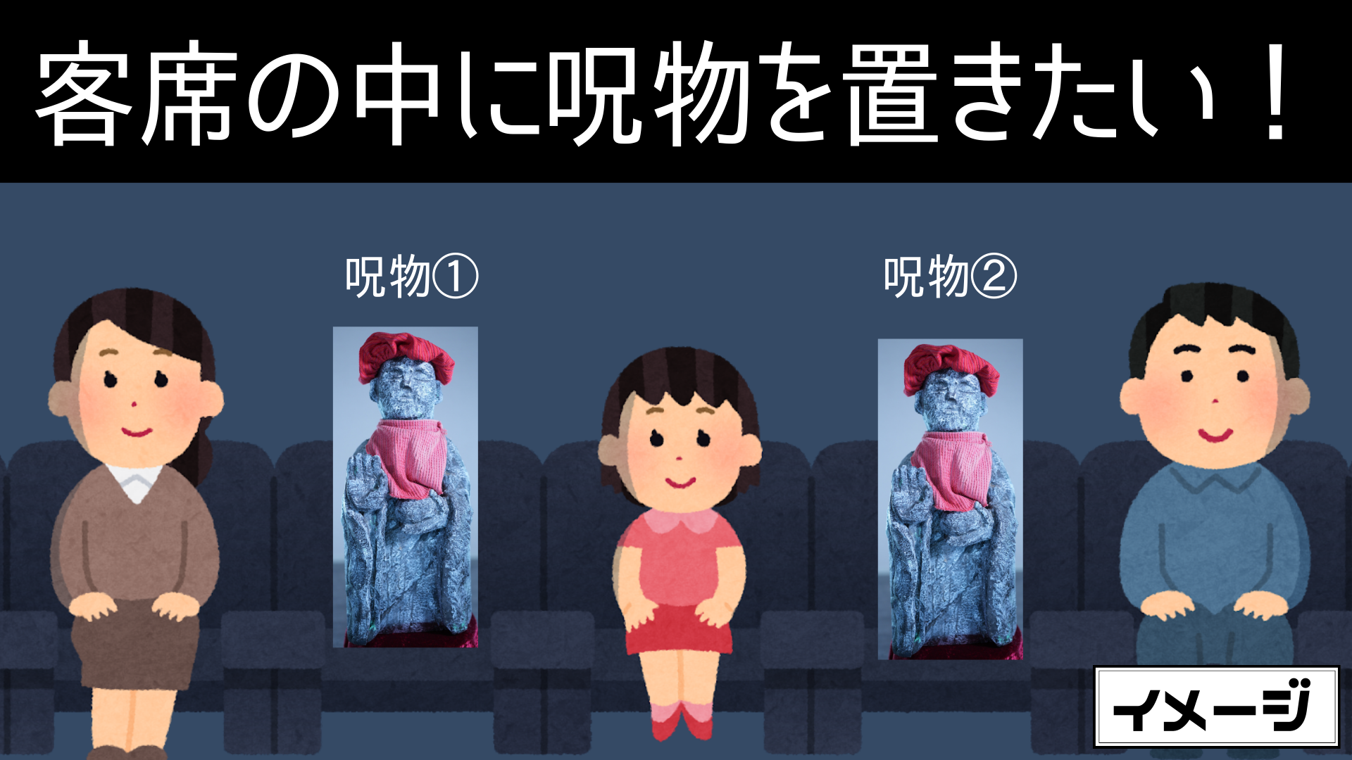 『オカルト地蔵』の上映時に観客席の中に座らせます。