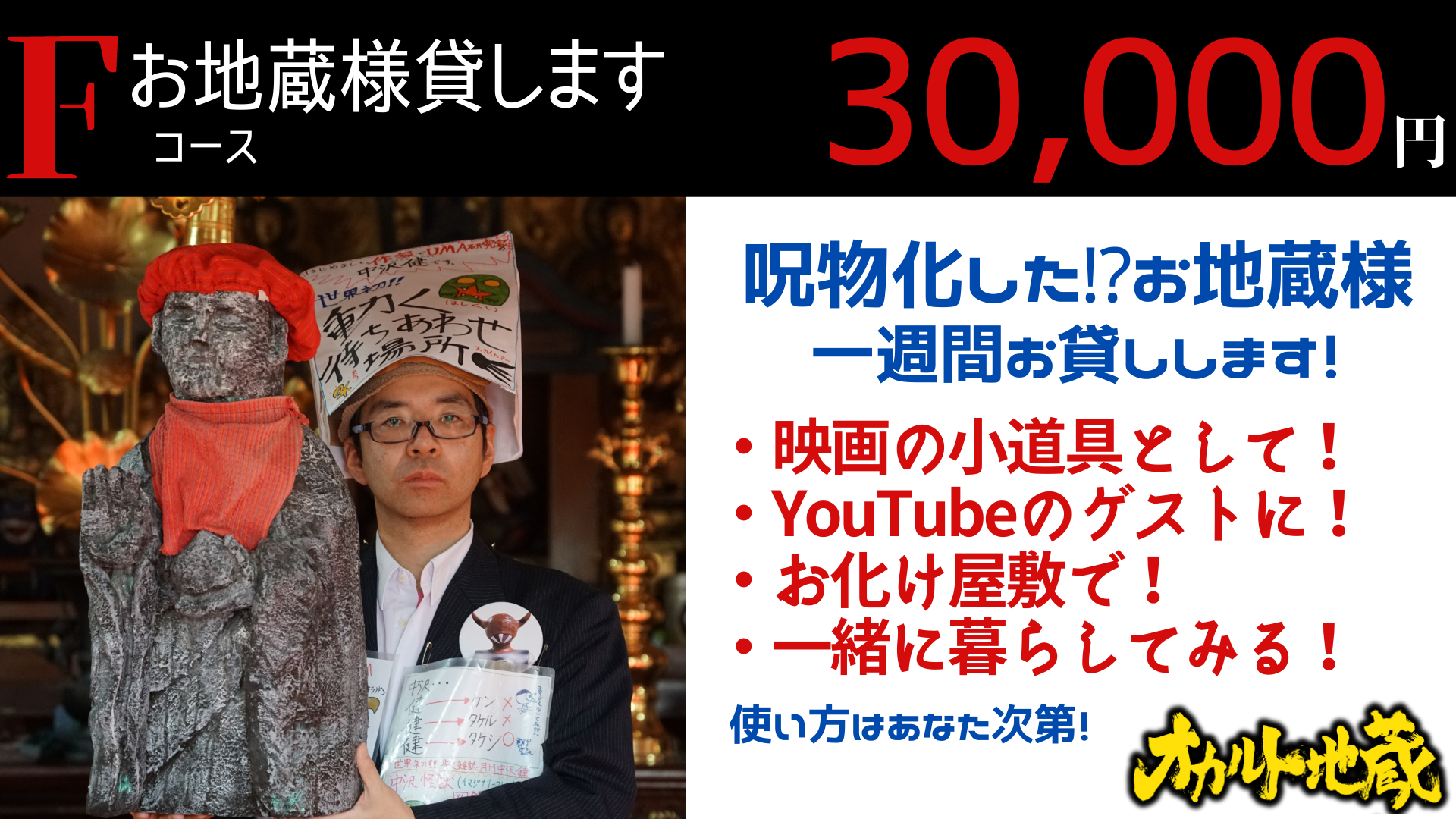 映画『オカルト地蔵』が広く知れ渡るため、そして全国で上映の機会が少しでも増えることを目的として大切に使用させて頂きます。
