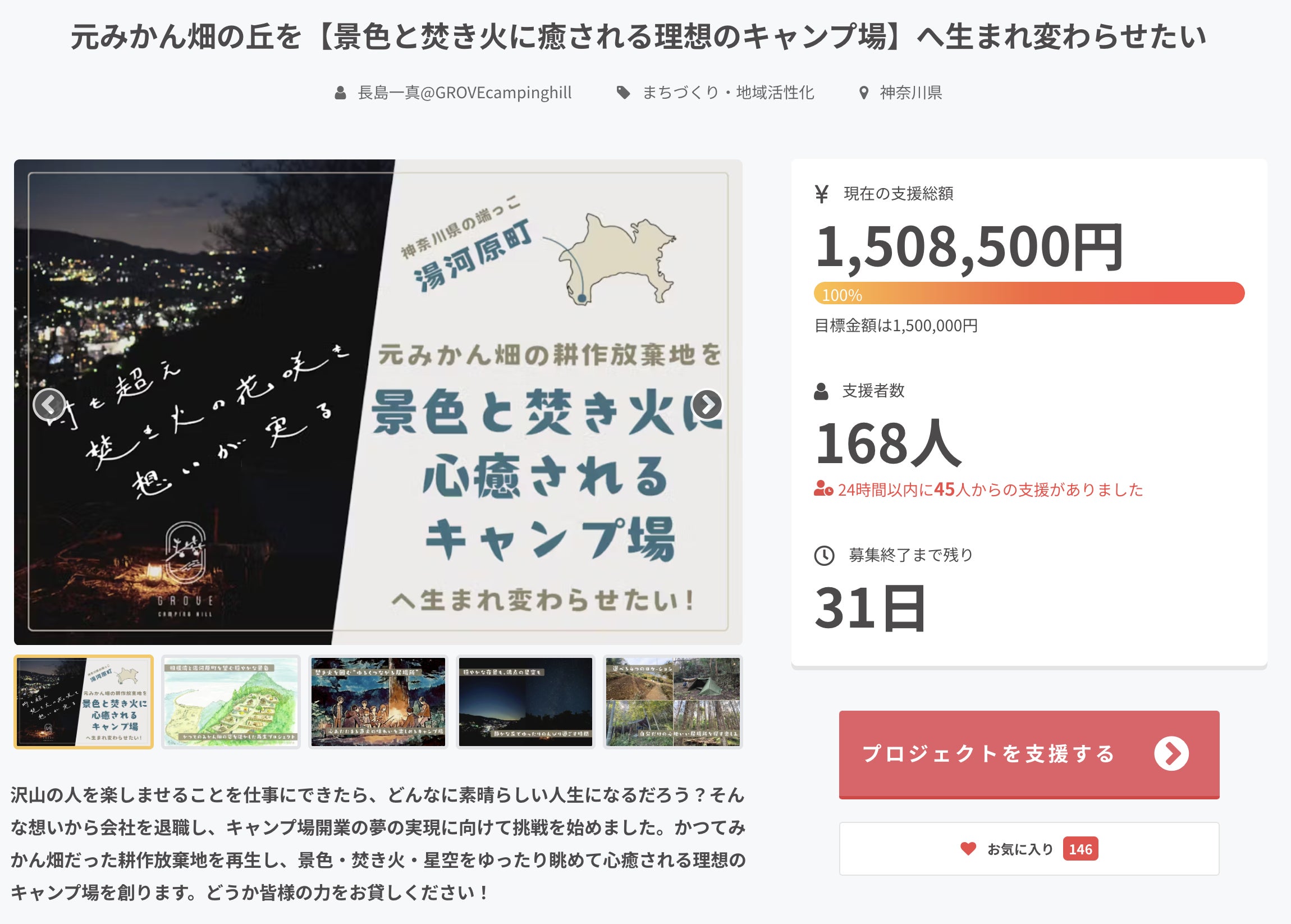 《168名さま》もの方からご支援をいただき、また各種SNS等でもたくさんの方が拡散・応援をしてくださり、皆さまの想いの集大成としてのこの目標金額達成であったと思います。