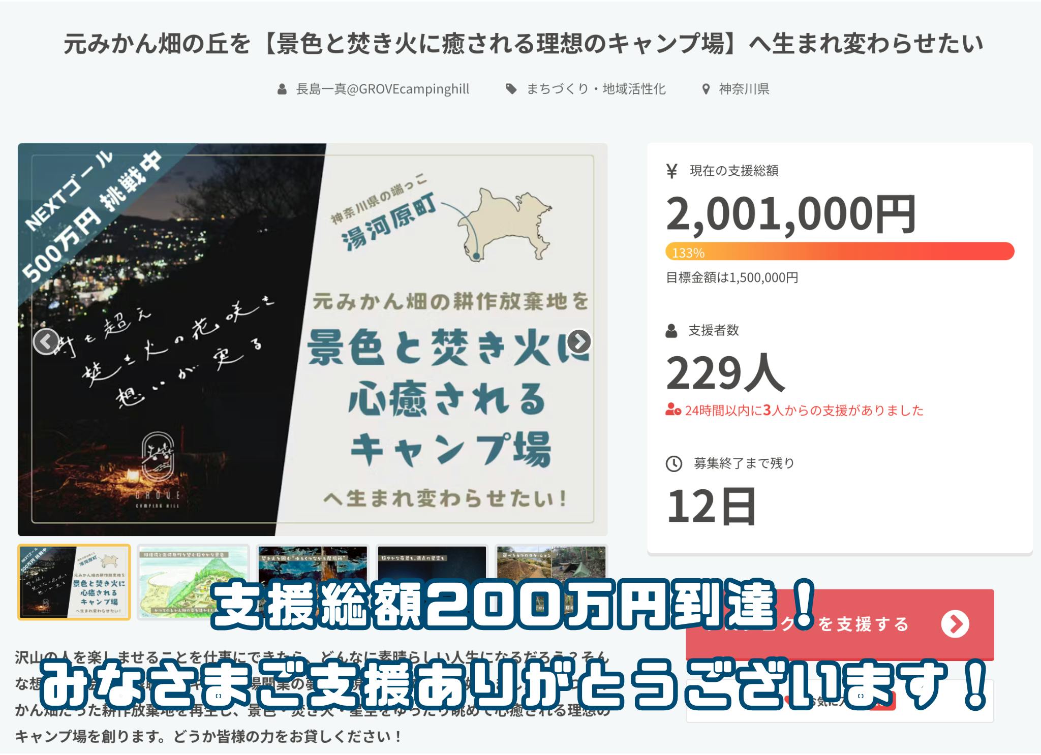 みなさまのご支援と応援のおかげさまで、229名様もの方より、200万円を超えるご支援をお寄せいただくことができました。