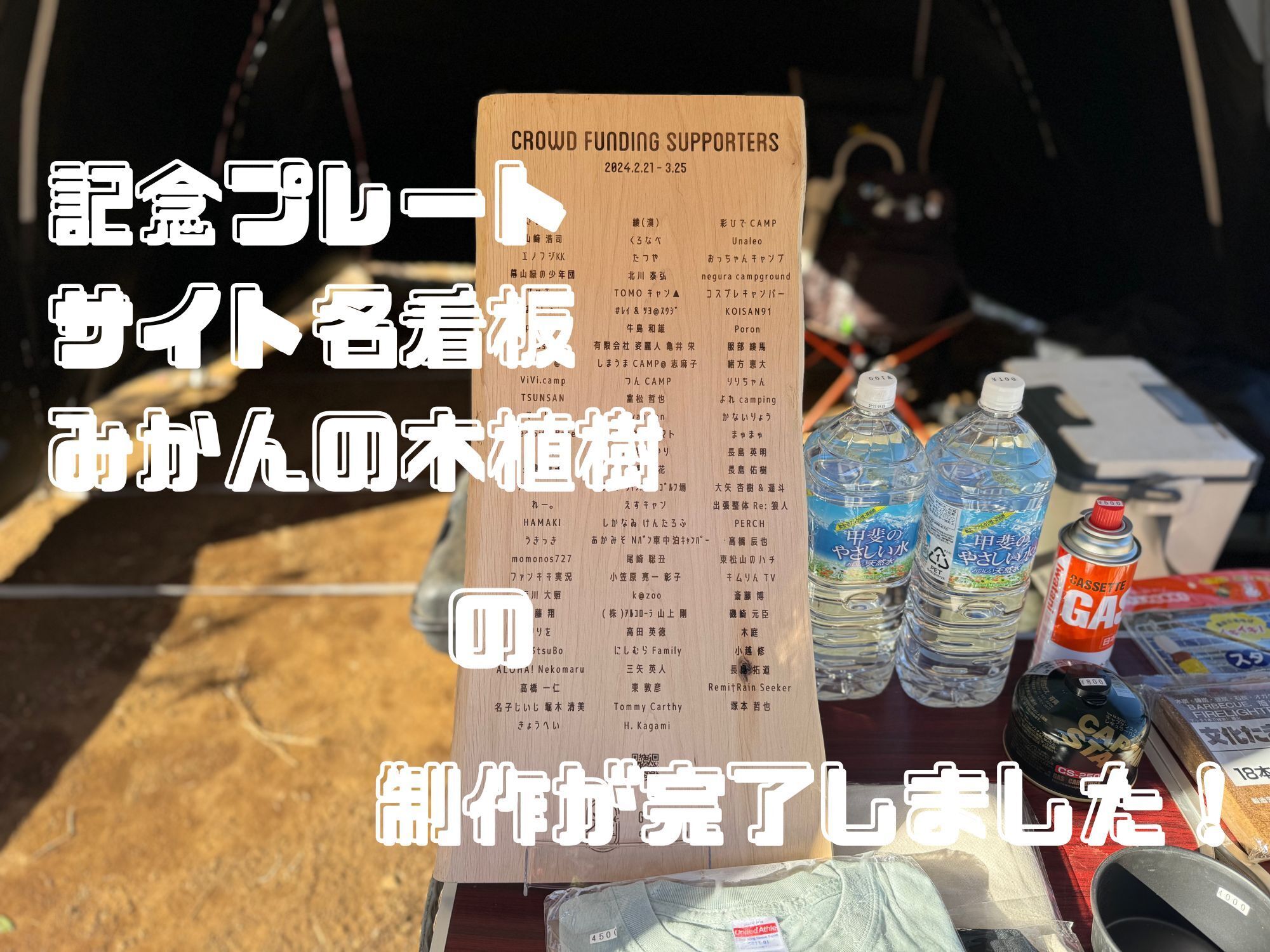 支援者の皆さまお一人お一人は、当キャンプ場を一緒に作ってくださった「仲間」だと、勝手ながら思っておりますので、敢えてこのような形を取らせていただきました。