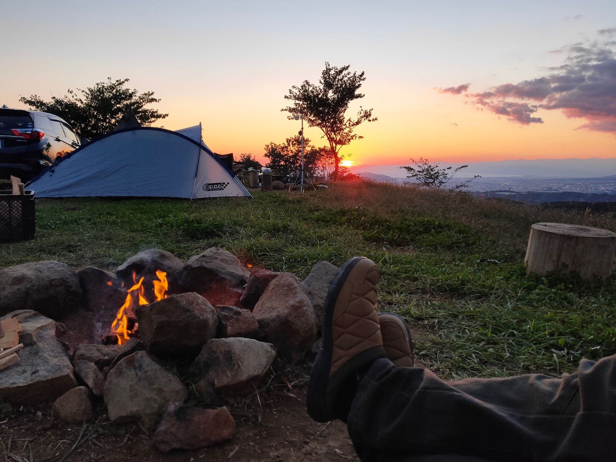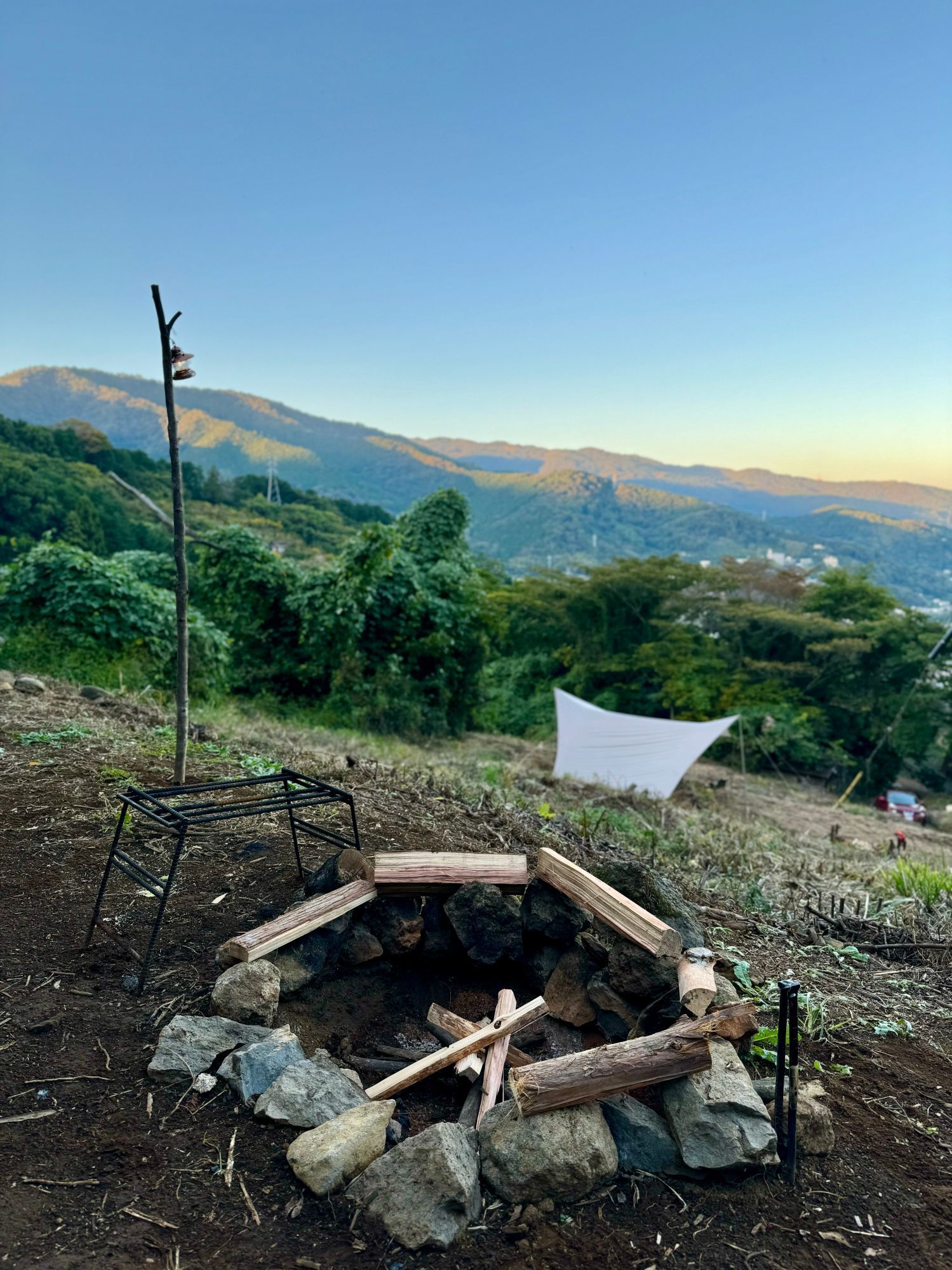 どこか心落ち着く風景この場所で静かに焚き火を眺め、鳥の声を聞きながら、好きなものを食い、好きな酒を飲む。
