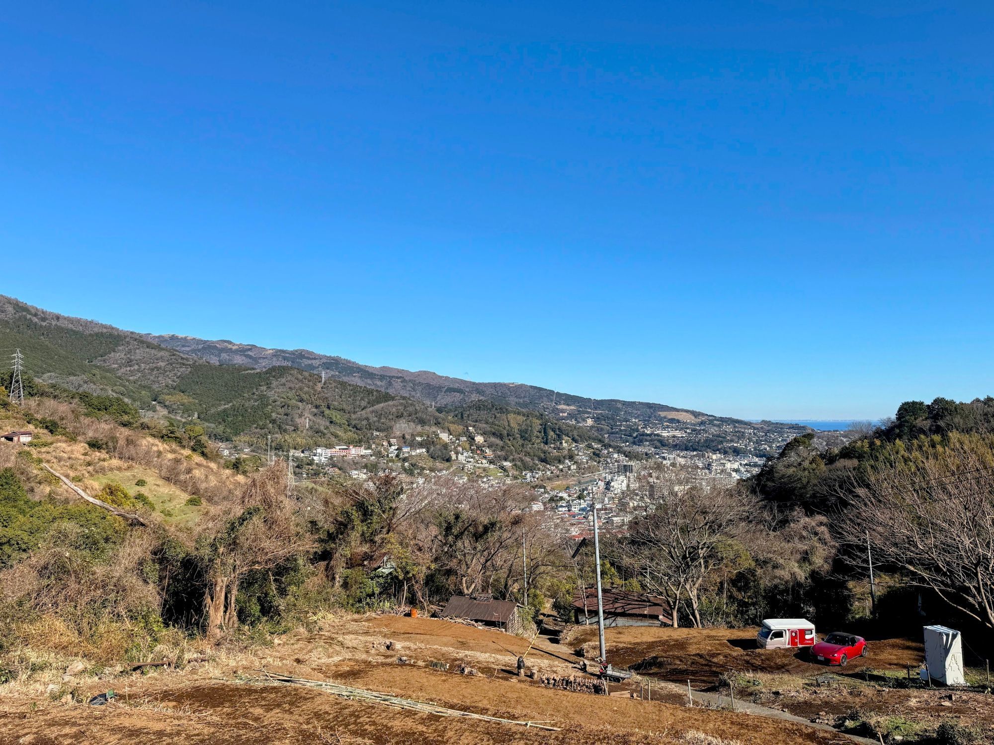 2023年1月末にこの土地に出会い、農地法や地目変更の手続き、地元住民・農家さんへの説明会、そして猛暑の中の草刈り地獄に明け暮れた約半年間を経て、ついに2023年9月に当時住んでいた神奈川県平塚市から湯河原町に移住。
