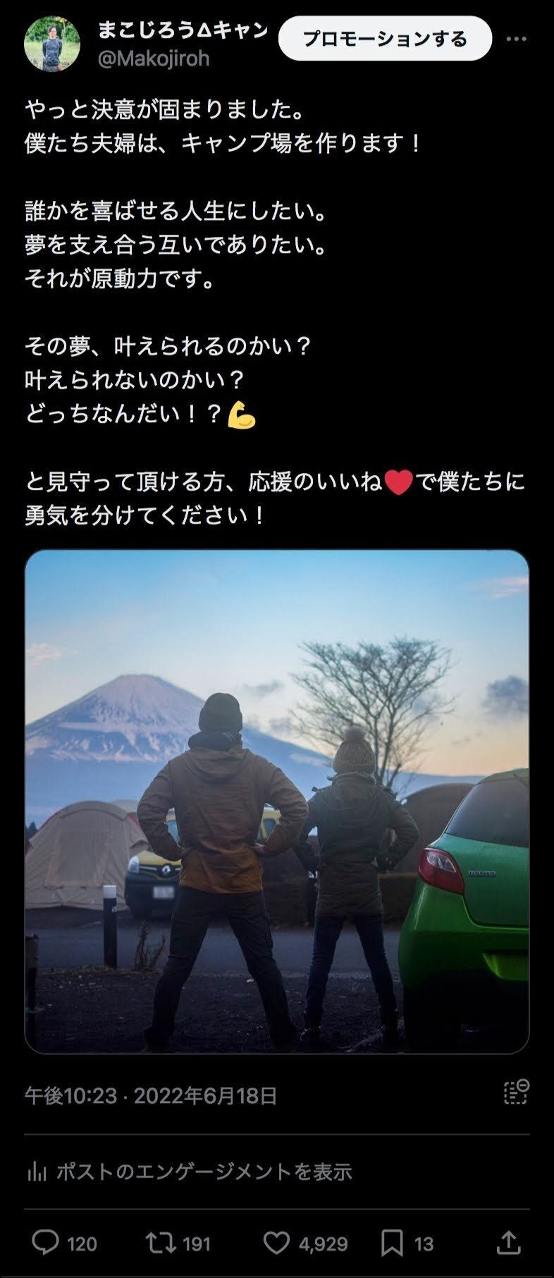 「こんな生き方がしたい」と自分で選び取った「たくさんの人に喜んでもらえるキャンプ場を作る」という道を歩んでいる今、サラリーマン時代は想像できなかったほどたくさんの方が自分に力を貸してくれて、一緒に楽しんでくれて、一緒に夢を追いかけてくれています。