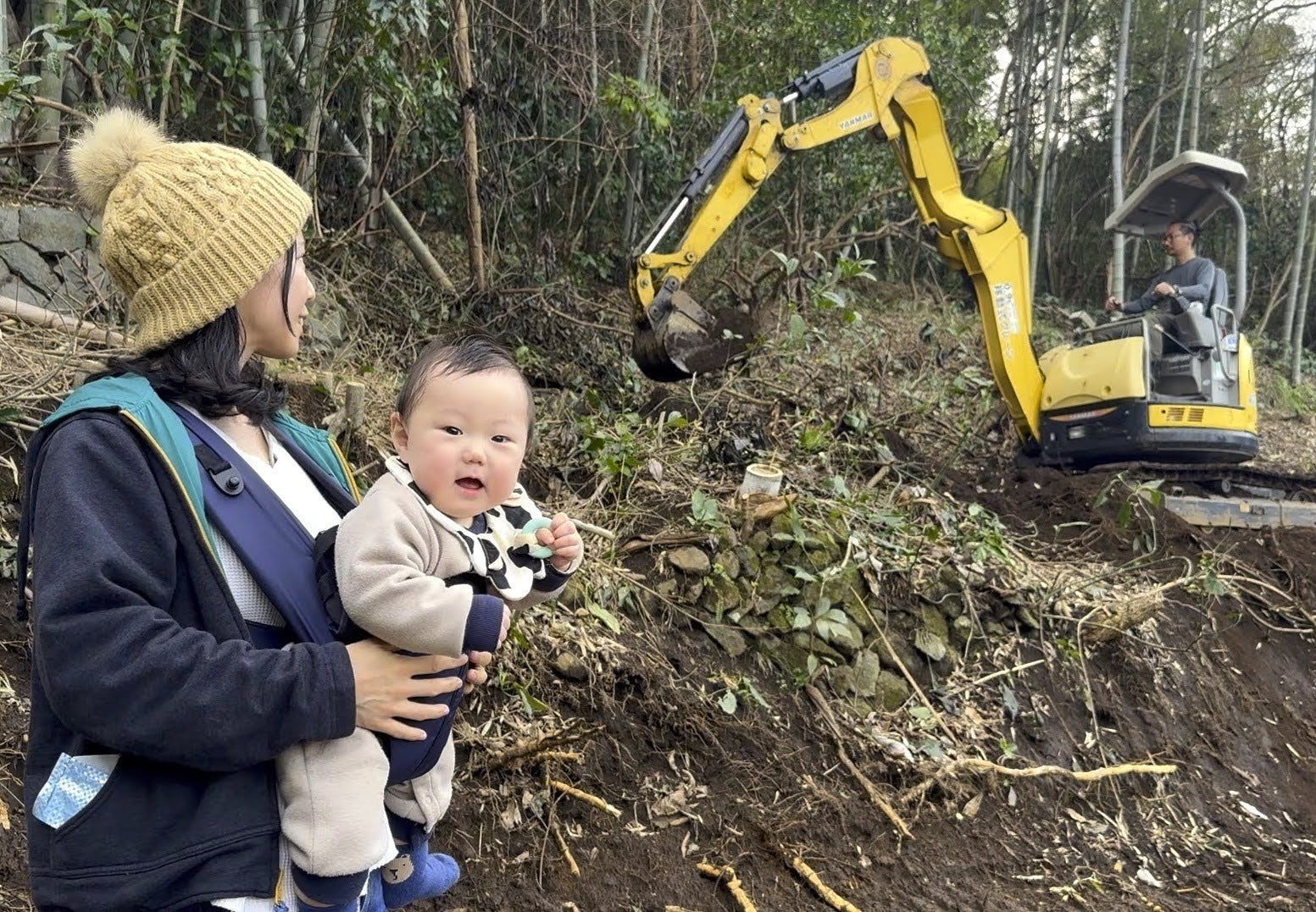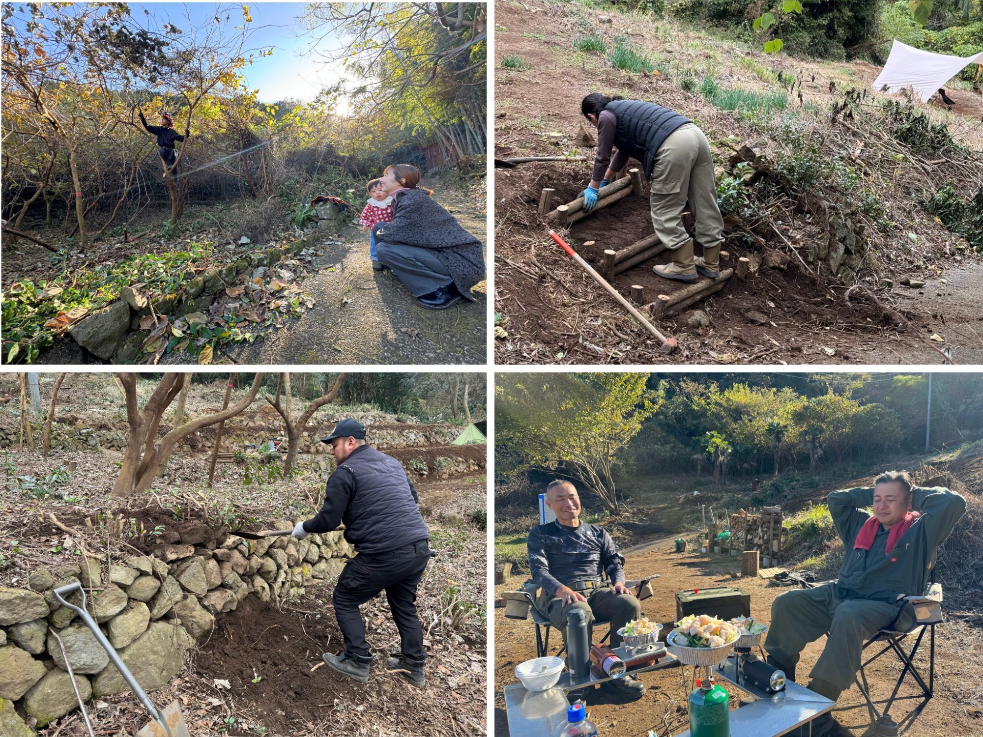 妻と息子に見守られながら、DIYで段々畑を復元