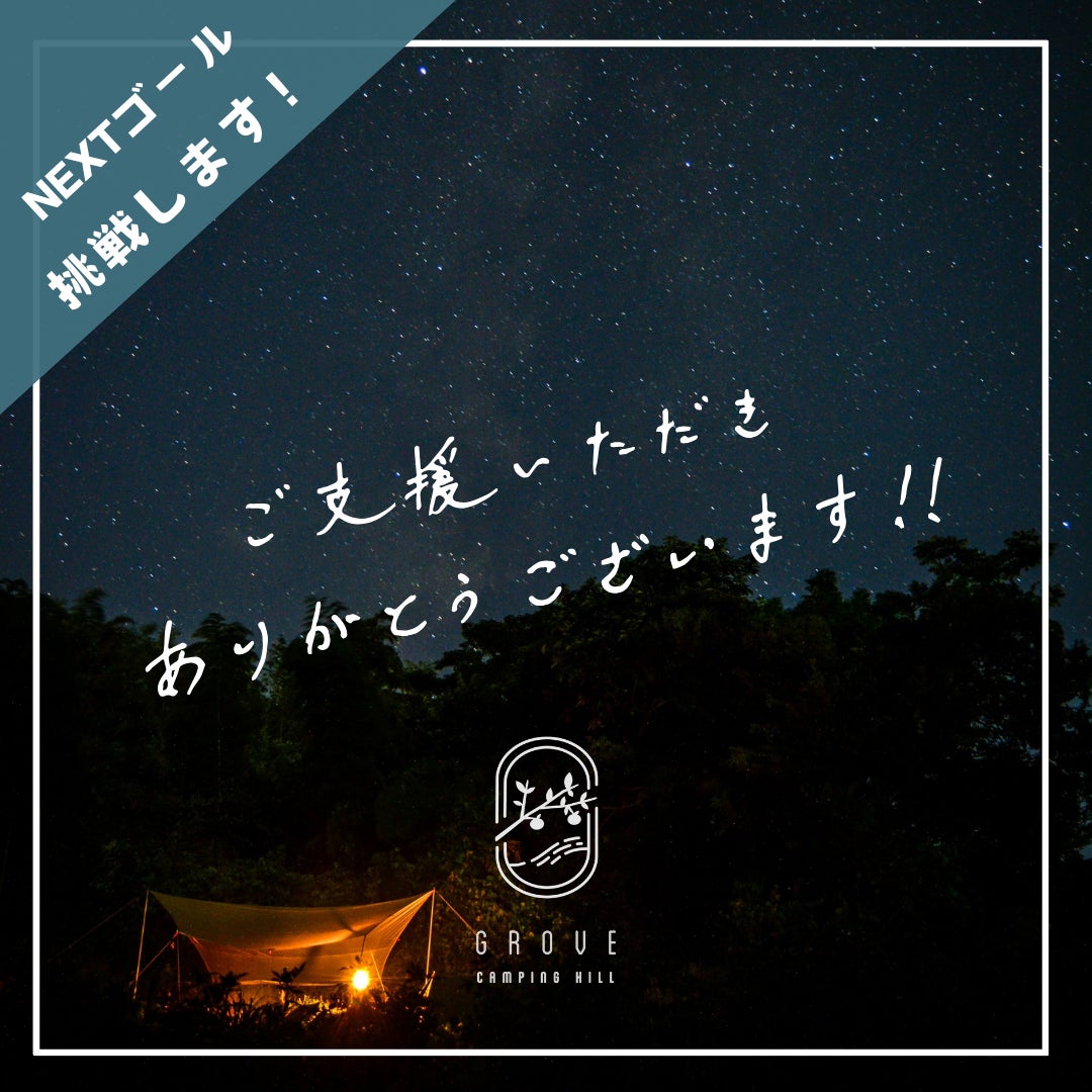 かなり高い目標とはなりますが、どうか引き続きのご支援と身の回りの方へのシェアで、一緒にGROVE camping hillを育てていただけますと幸いです!