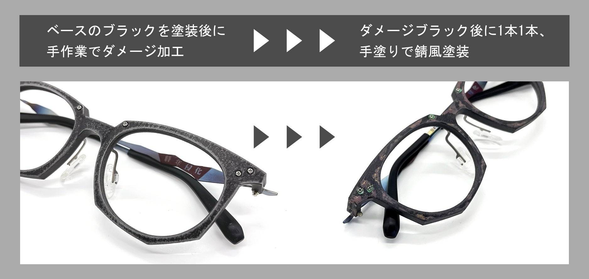 「経年侵化」と名付けられたシリーズは発売前からSNSでメガネ好きや業界、メディアで話題の商品に!