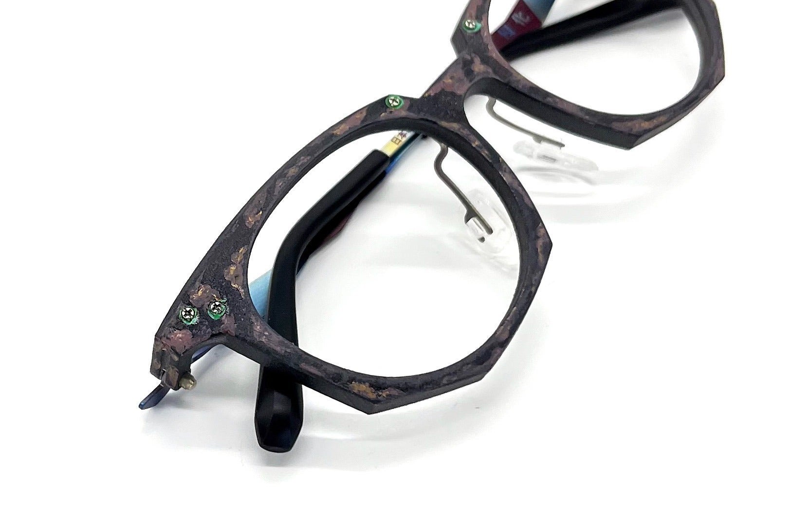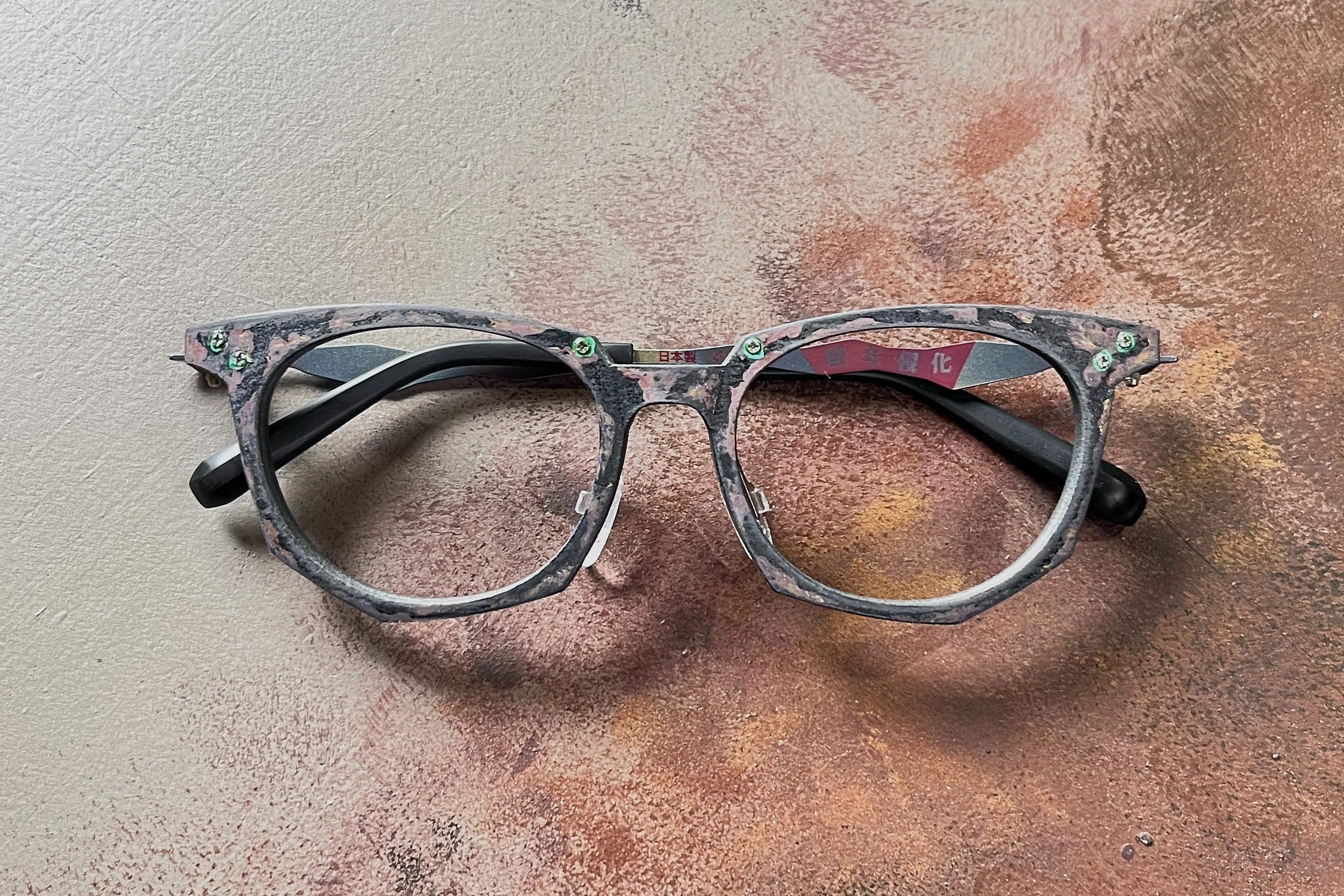 塗装は剥げ堕ちているけど眼鏡らしく左右対称。 塗装なんてどうせ?げ堕ちるから最初っからこれくらいでちょうど良いだろ。 むしろ経年で徐々に剥げ堕ちて自分だけのモノに育っていく過程も楽しいんじゃないのか?