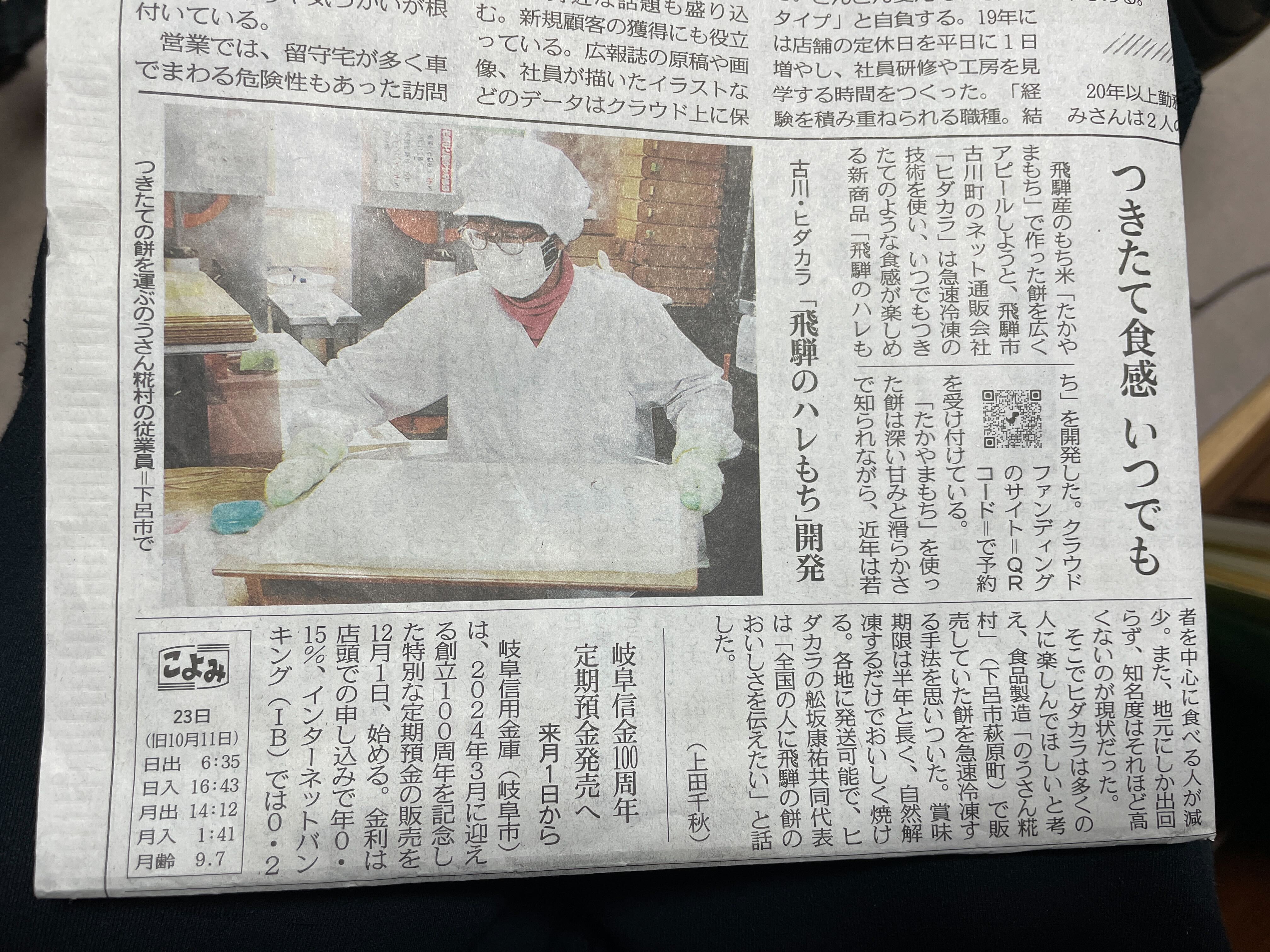 ヒダカラの及川です。この度は、私達のプロジェクトをご支援いただき、心より感謝申し上げます。皆様からの暖かいご支援と、応援のおかげで目標であった50万円を達成することができました!こんなにも沢山の方に、飛騨のお餅をお届けできること、大変嬉しく思います。本当にありがとうございました。そして、大変お待たせいたしました。②12月下旬お届け(25日~31日お届け) をお選びいただいた皆様への発送を本日完了いたしました。到着を楽しみにお待ちいただけますと幸いです。是非年末年始おいしいお餅を、皆様でお楽しみください!私の美味しいお餅の探求は続きます。また来年お餅を通じて皆様にお会いできることを楽しみにしております!ネット通販「ヒダカラ商店」でも今後販売予定ですので、是非またお召し上がりくださいませ!ご不明点等ございましたら、お気軽にご連絡ください。 ヒダカラ 及川