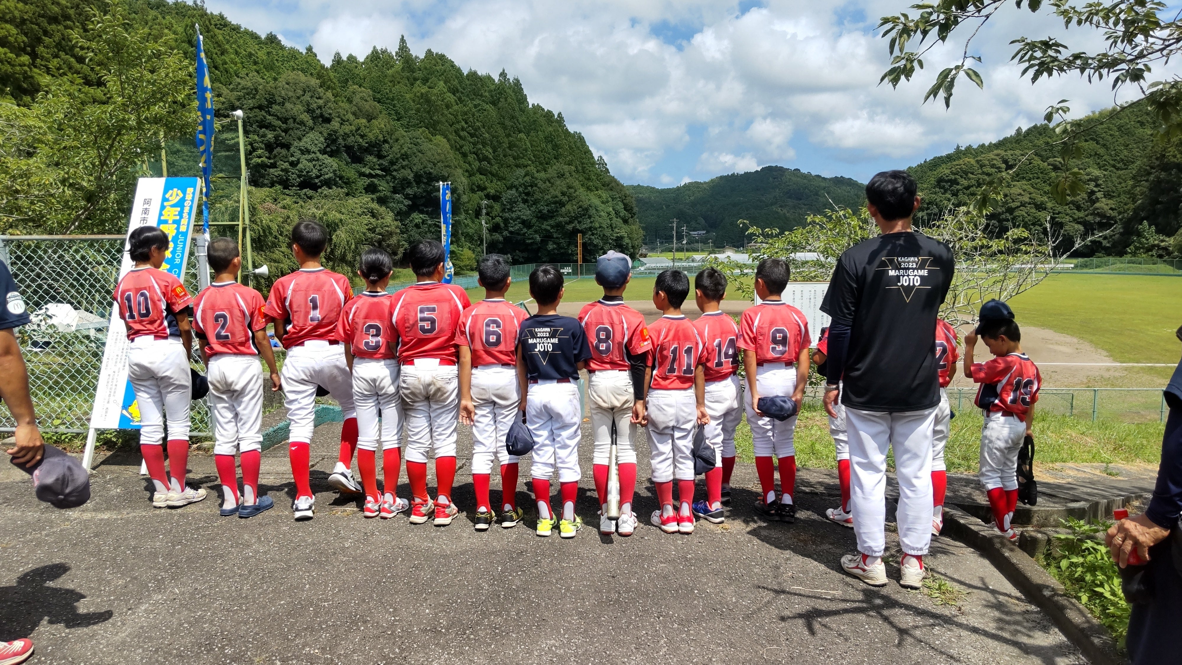 話は飛びますが、試合会場に隣接する新野中学校は団員保護者の先輩の地元で、後にプロ野球選手になりました。なんとなくですが、皆の頑張る背中を当時の先輩の勇姿を皆と重ねて見ていました。将来の夢は様々あれど、今この場に集まって競いあえる素晴らしさ…この先もずっと続いてほしいものです。