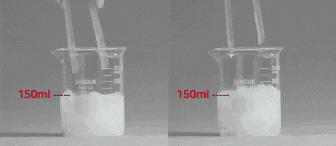 シリコーンコーティングを施した特殊設計のマイクロファイバーと通常製品では、こんなにも含水量が違います!