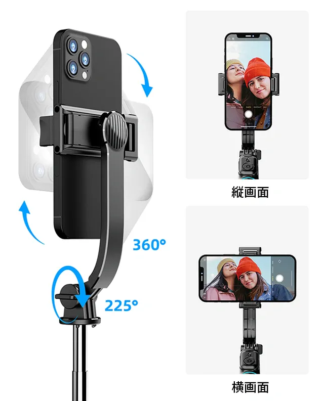 「TOKQI-C01」にスマホを挟むと、水平に360°回転することが可能(45度ごとに計8回回転する)。「TOKQI-C01」を使えば、いい角度を見つけず、単にスマホをいじって撮影する必要がなくなります。