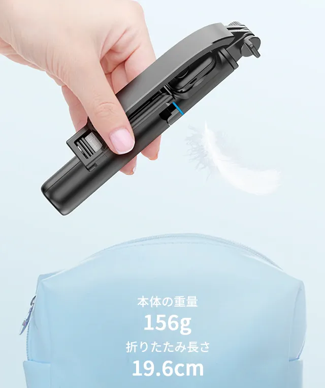 「TOKQI-C01」はコンパクトで超軽量なデザインを採用しており、重さはわずか156g!折りたたみでバッグやポケットなどに簡単に入れられます。いつでもどこでも自撮りをできます。