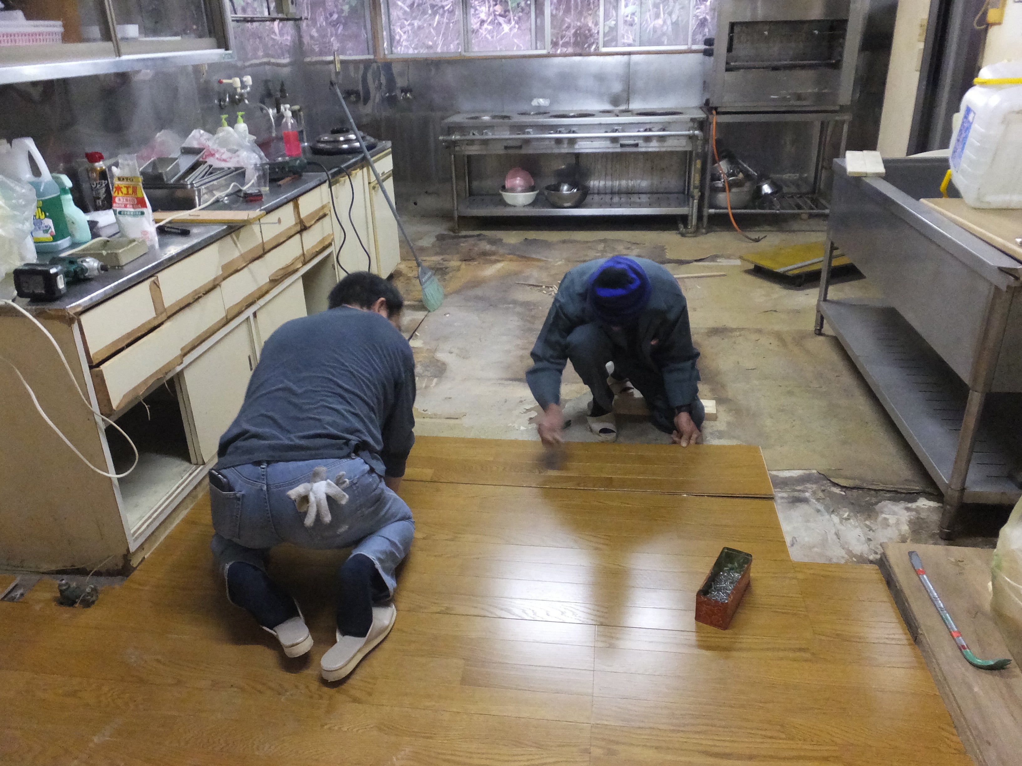 2019年1月に静岡県伊東市川奈に築60年の古い旅館を賃貸しました。半年位かけて回りの草刈や内装のリホームを日曜大工で始めました。部屋はカビだらけで匂いが強く女房はギブアップで病院に入院し一人で一部の部屋で宿泊して天気のいい日は窓をすべて開けてお部屋の掃除をして2カ月位立ちましたら匂いがなくなりホッとしました。友人にもお手伝いしていただきキッチンの床張りをしました