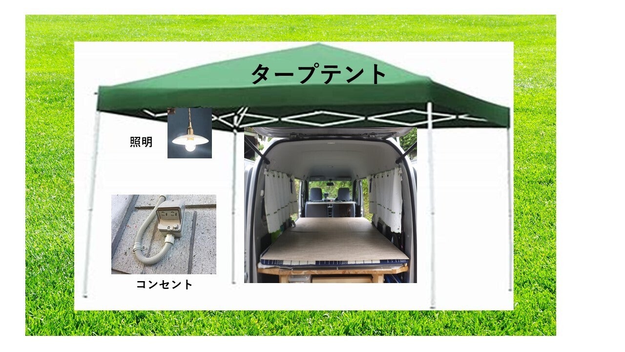 駐車スペースにはタープテント・コンセント・照明が設置されていますので手ぶらでご利用できます。