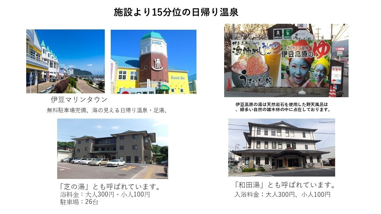 ※ 近隣には多くの観光地や日帰り温泉があります是非ご利用ください。