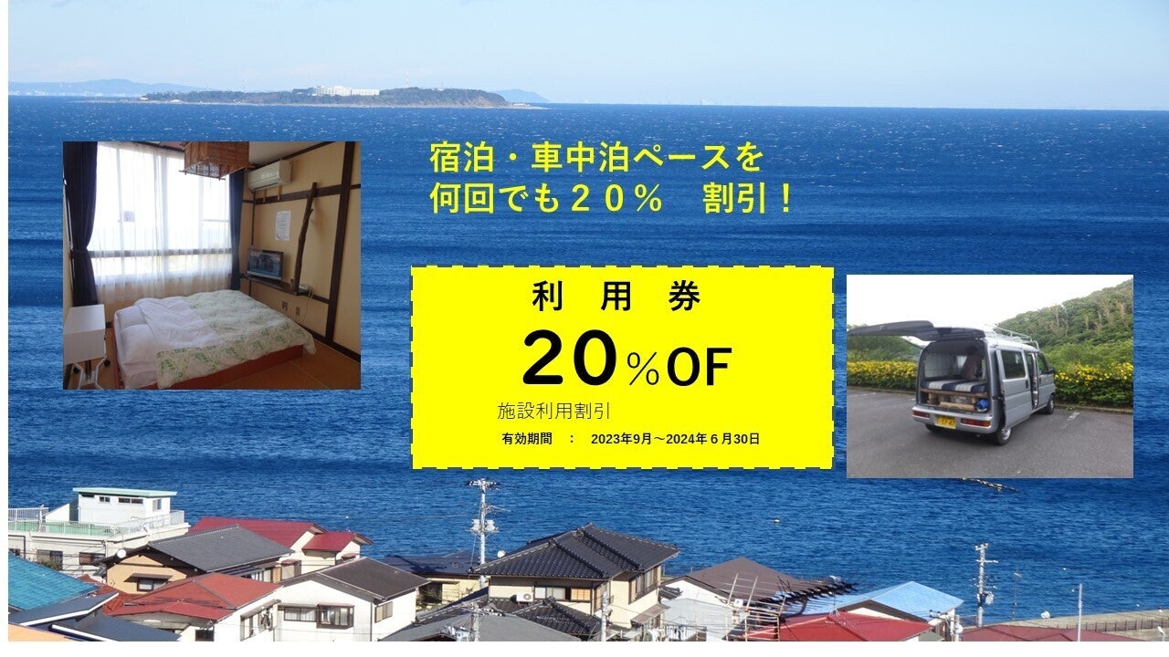 ◆プロジェクト支援者全員に【川奈アイランド・車中泊ペース・休憩場】など期間中は施設利用20%引き利用券を毎回,ご利用できますので多くのご支援をお願い致します。