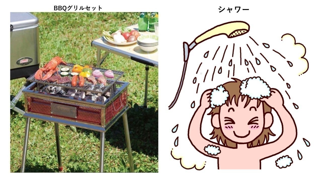 ※車外においては火気厳禁となっていますのでコンロ・炭バーべーキューは調理室です。予約制で別途料金がかかります。