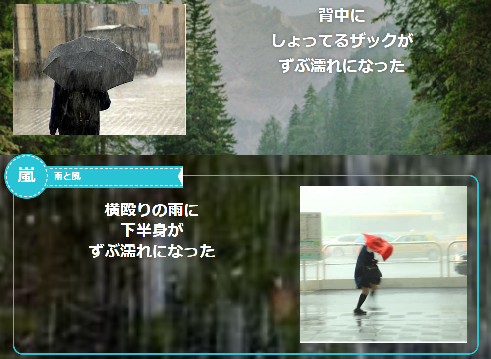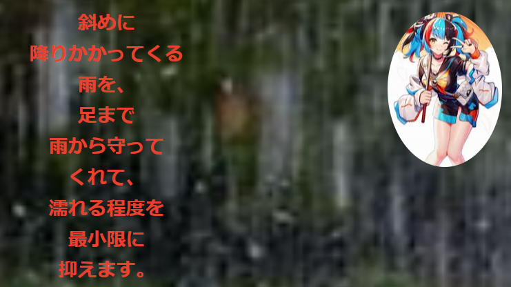 この様に背中に背負ったリュックが濡れにくい