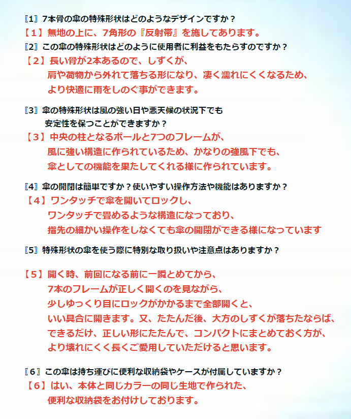 ファイバーを使用した丈夫な7本骨