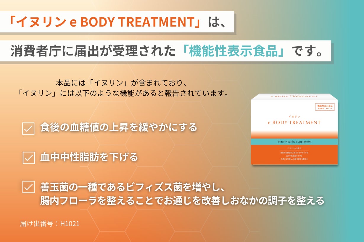 「イヌリン e BODY TREATMENT」は、消費者庁に届出を受理された「機能性表示食品」です。