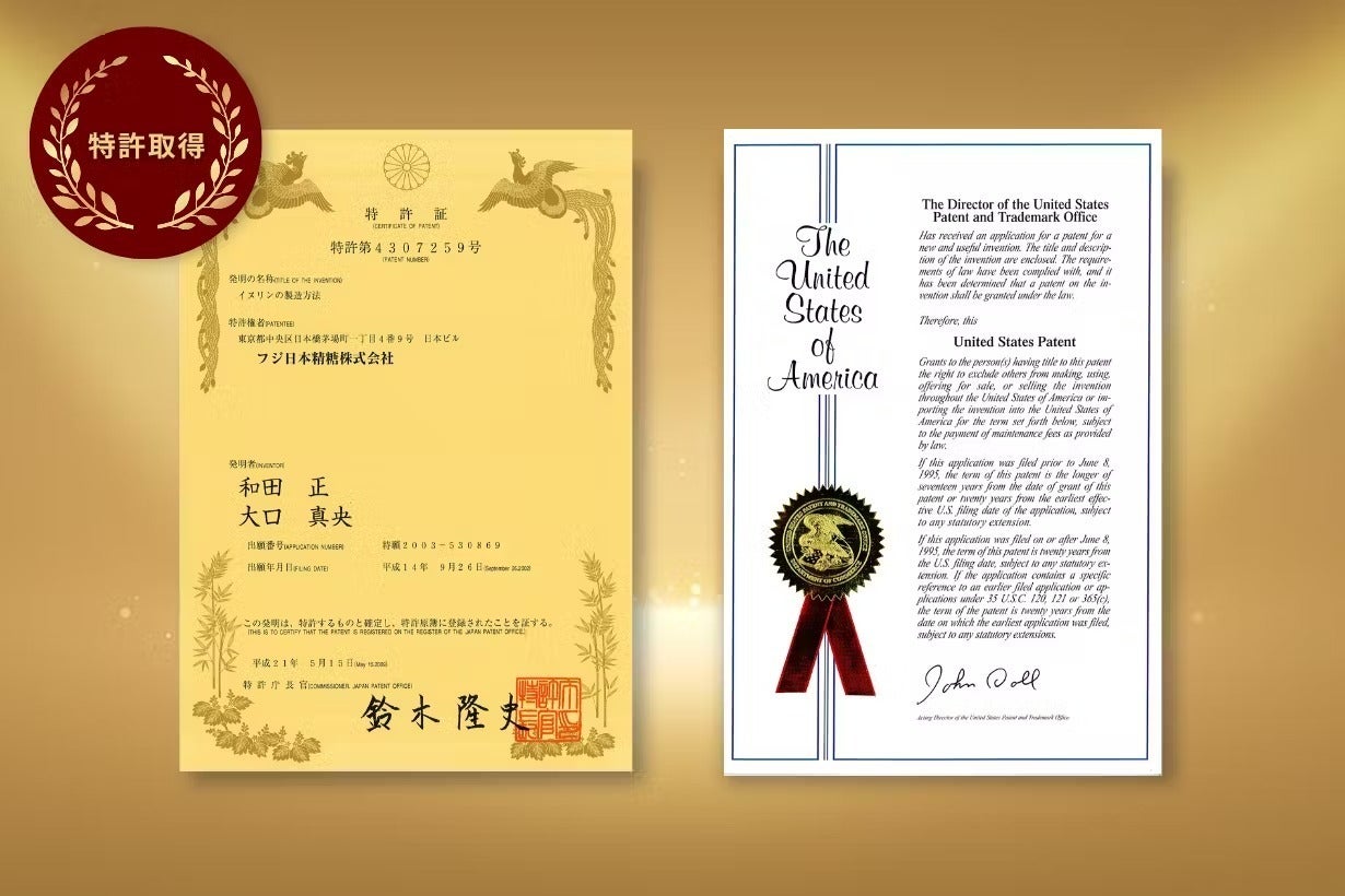 「イヌリン e BODY TREATMENT」では、特許取得の独自製法で作られた非常に純度の高い「イヌリン」を採用しています。その純度は94.7%以上。