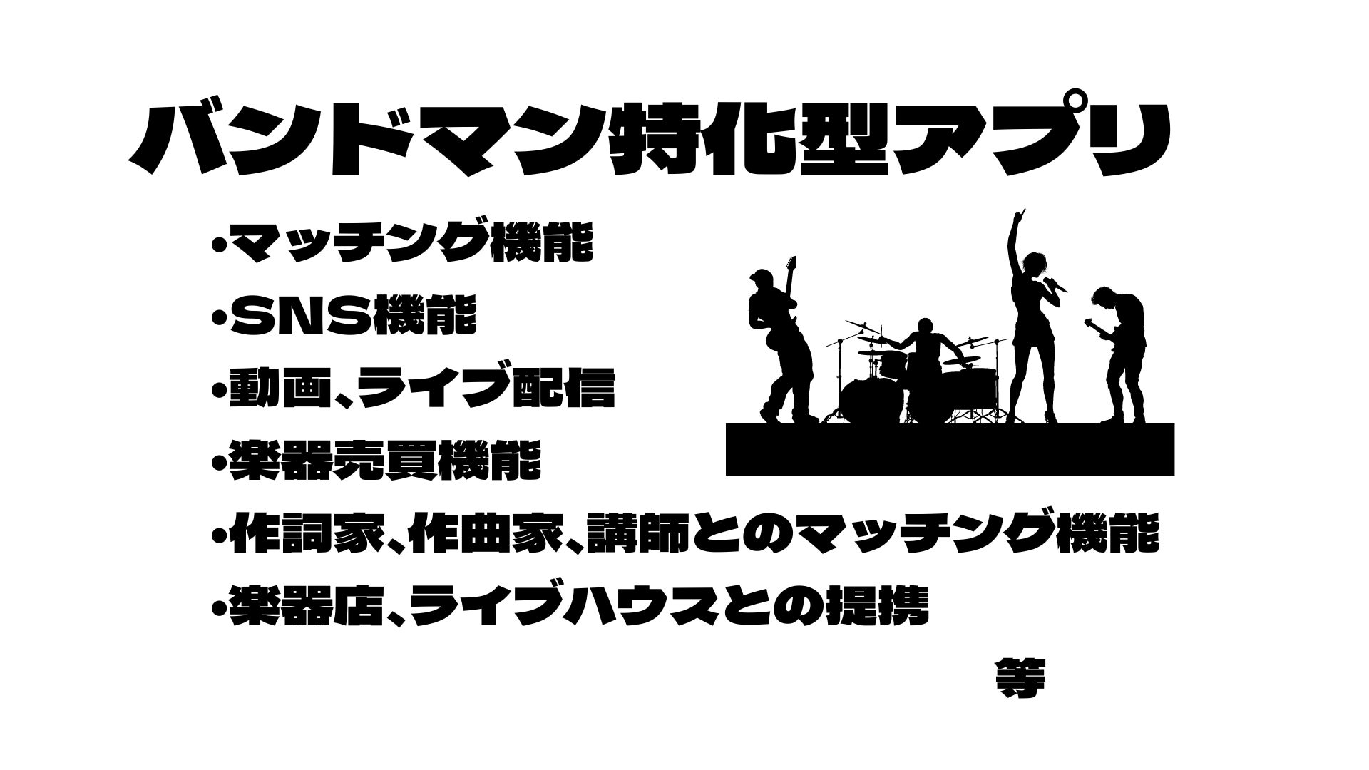 例えば、作詞・作曲家や講師、とのマッチング機能。楽器の売買、SNS機能、動画投稿、ライブ配信機能等、搭載するつもりです。