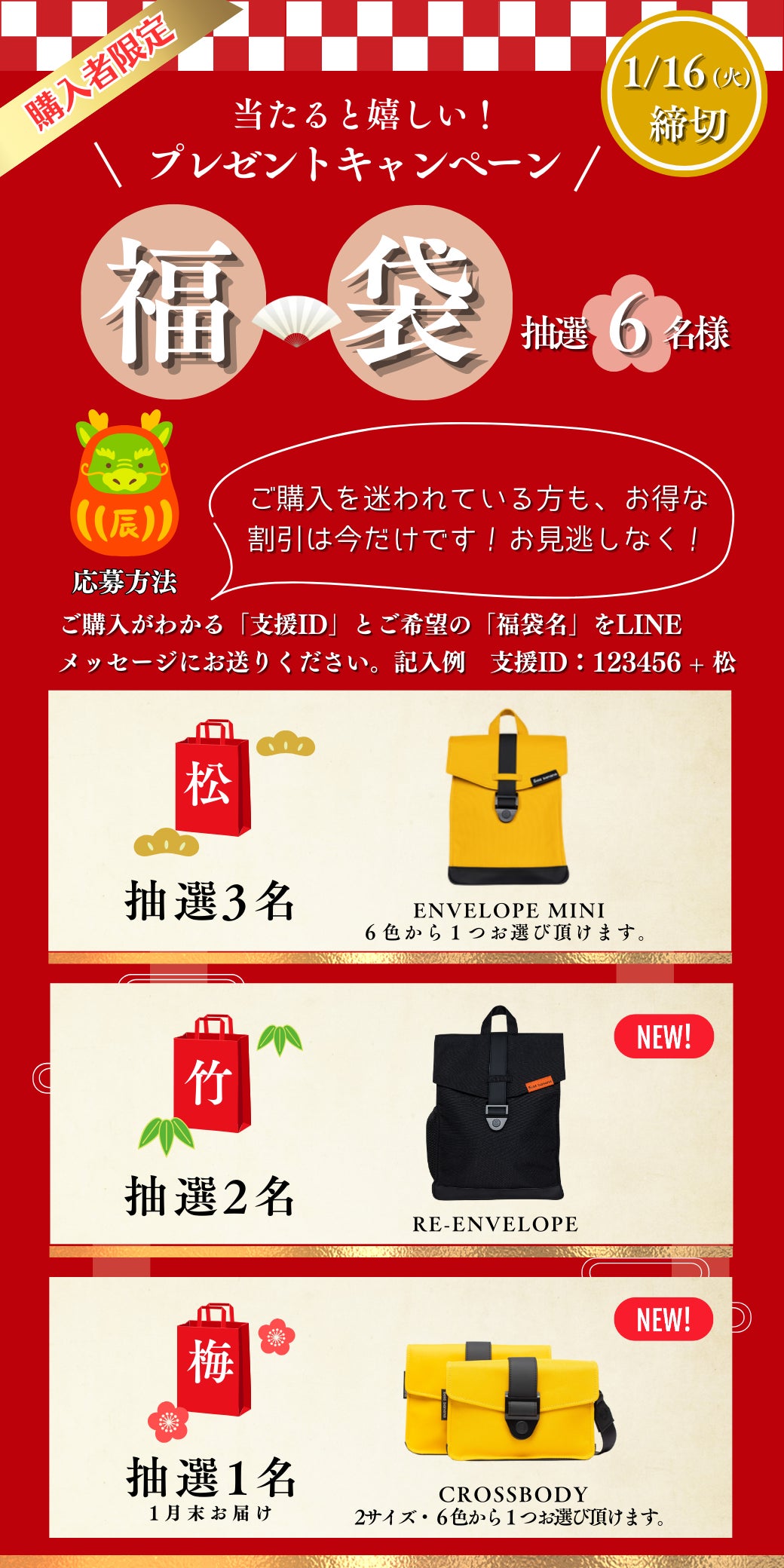 LINE登録者限定に、豪華福袋が当たるキャンペーンを実施しております。ご購入を迷われている方も、ぜひこの機会にご応募ください。お得な割引まだございます!皆さんのたくさんのご応募をお待ちしております。LINE登録者限定に、お得なキャンペーンや新製品についての情報をご覧いただけます。たくさんのご応募お待ちしておりますLINE公式アカウント: LINE登録