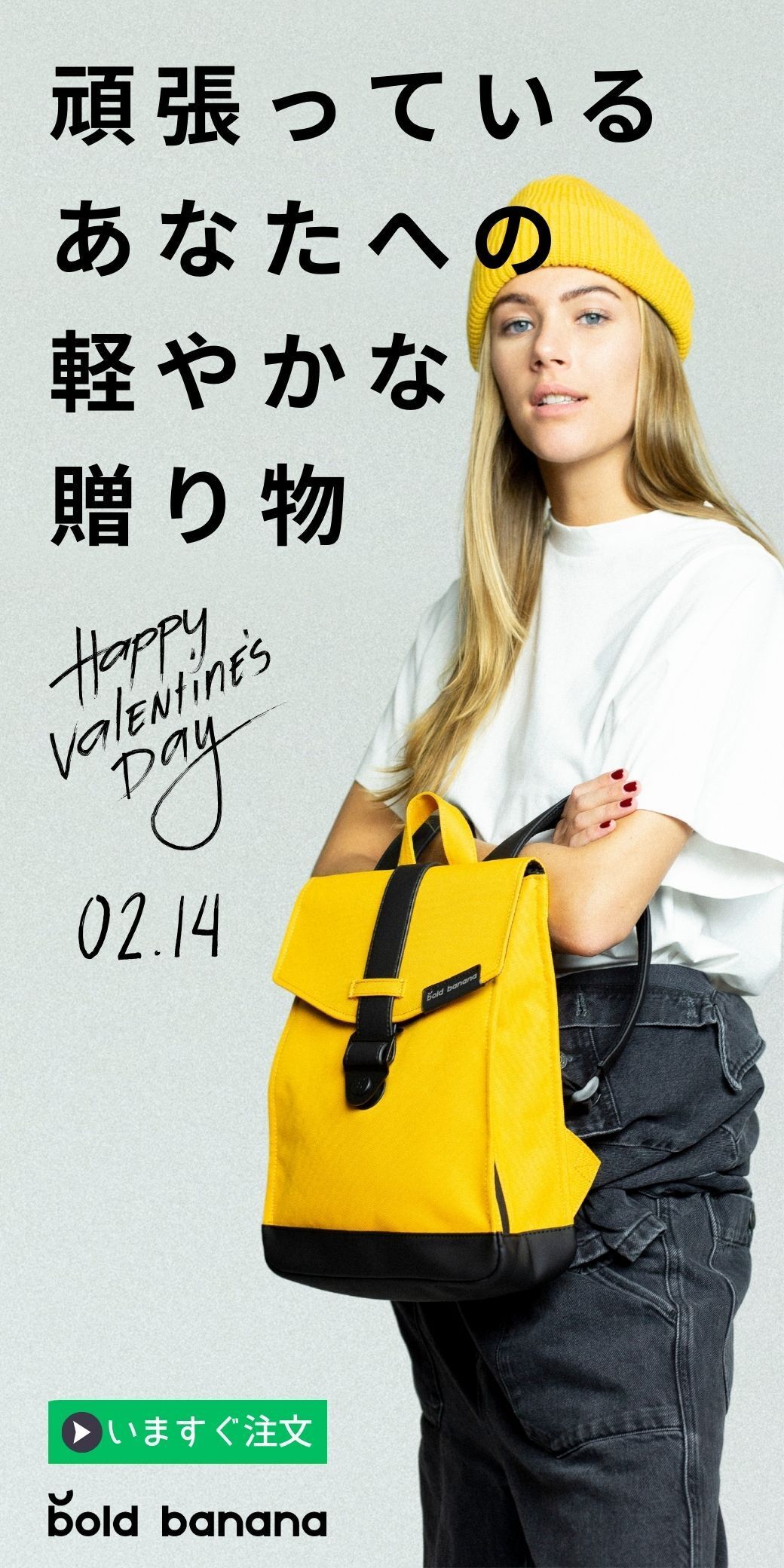 今、購入でバレンタインのギフトに間に合います!好きな人に、家族に、友達に、日頃、頑張ってる方に、ボールドバナナリュックで気持ちをつたえよう!お得なキャンペーン中ににぜひ、ご注文を!また、LINE登録で、お得な早割プレゼントキャンペーン情報や最新情報をタイムリーに受信できます。お見逃し防止にご活用ください。LINE登録