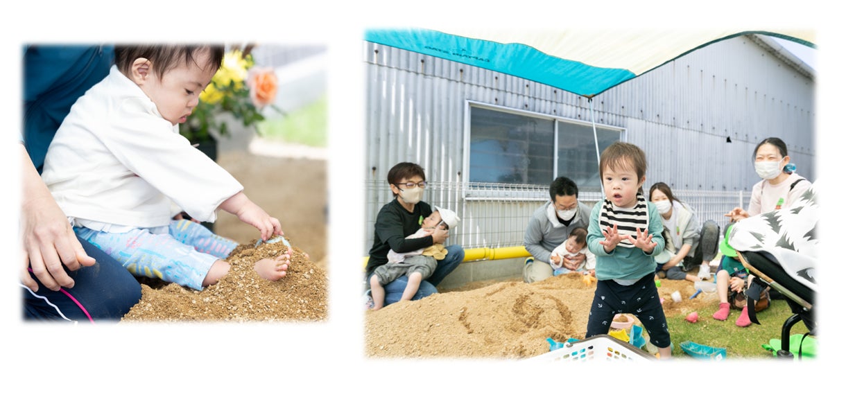 お鼻にチューブが入っていたり酸素がついていたり呼吸器がついている医療的ケアのある子どもたちが生後3カ月ごろから利用しています。子どもたち同士のかかわりのなかで成長発達しています。