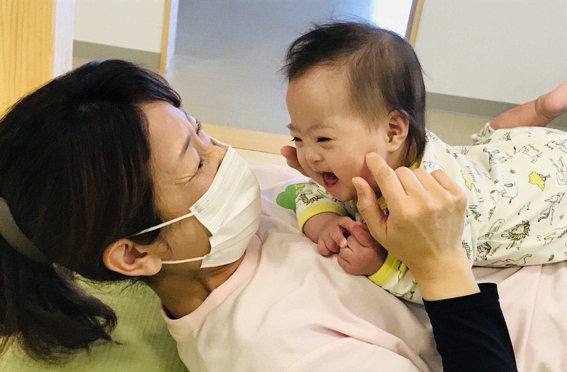 お鼻にチューブが入っていたり酸素がついていたり呼吸器がついている医療的ケアのある子どもたちが生後3カ月ごろから利用しています。子どもたち同士のかかわりのなかで成長発達しています。