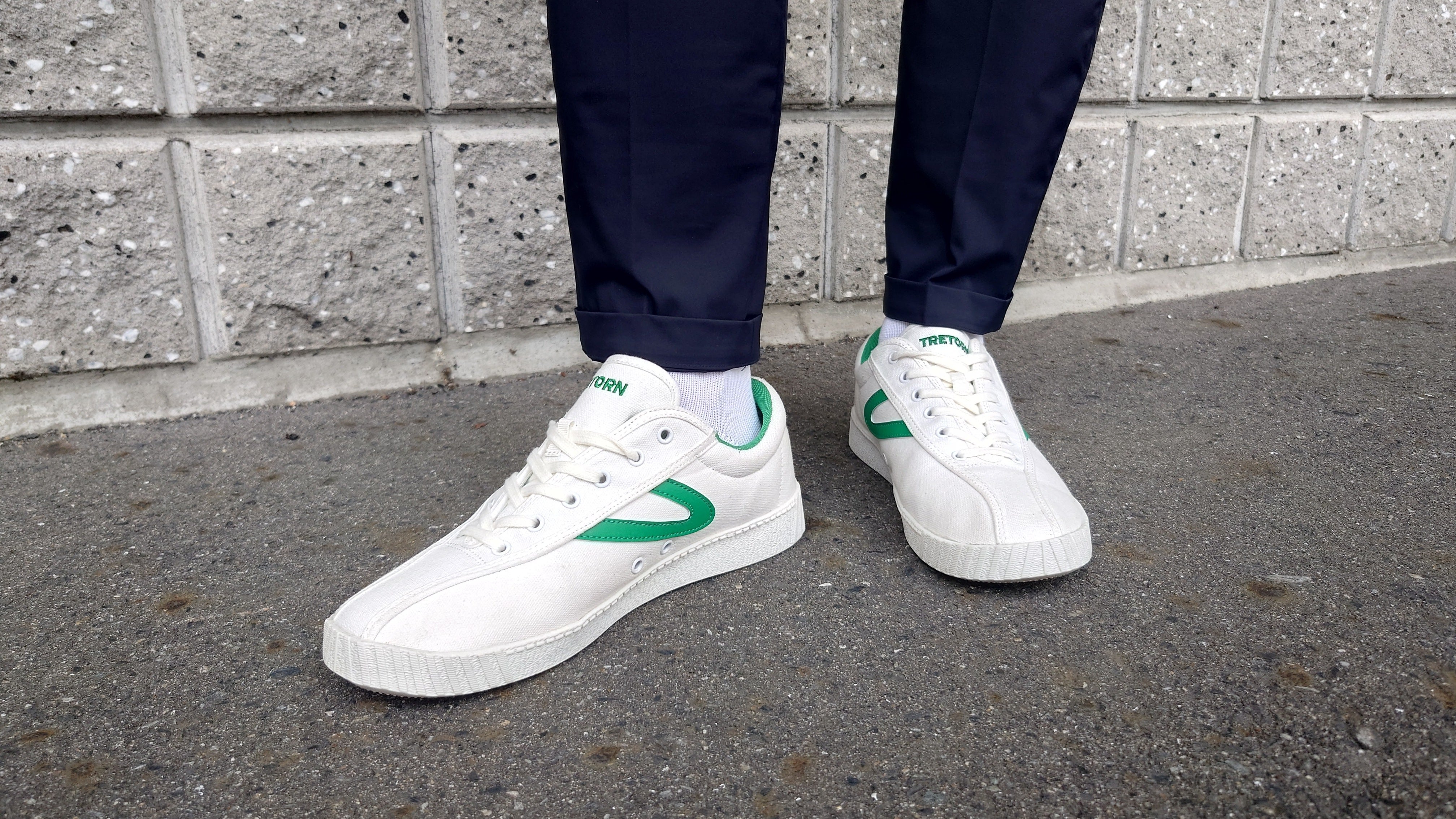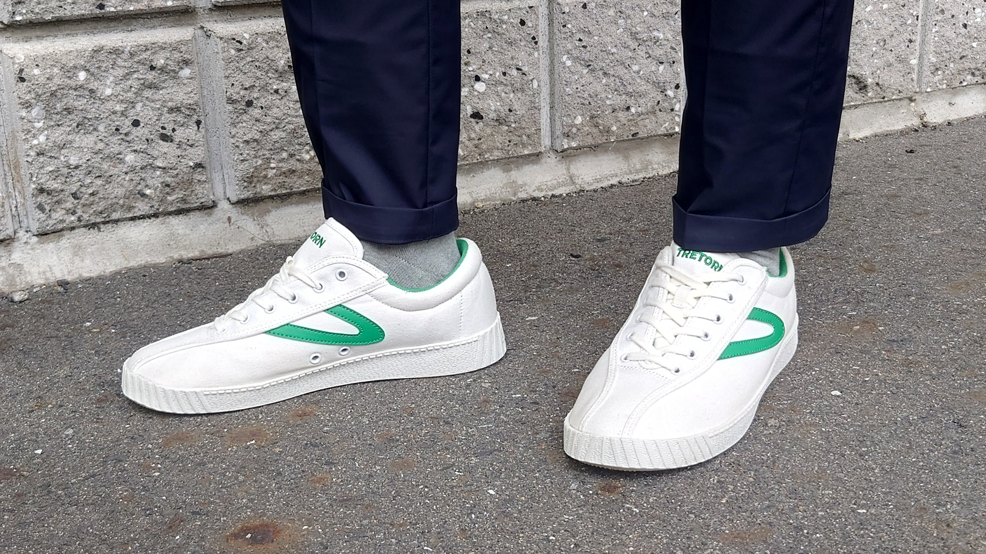 写真は厚手のガラボウの靴下、コットンリブの靴下(白、グレー)でトレトンスニーカーを履いてみました。(ちなみに靴下は全て地元奈良産です)