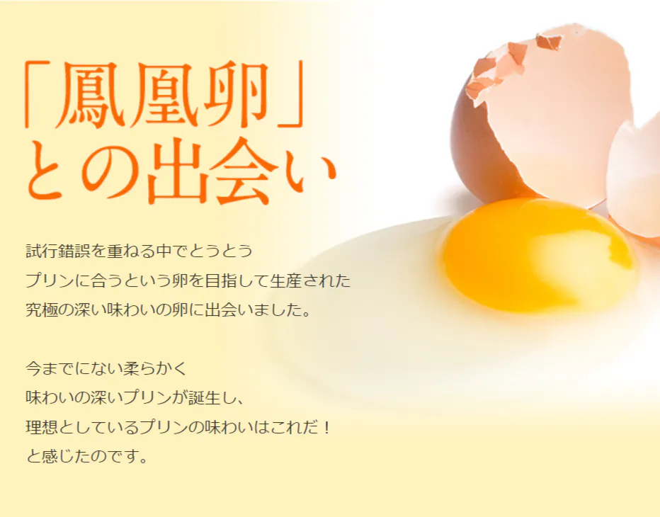 ご存知の通り、コロナ禍ではフードロスが問題になりました。始まりは一本の電話から「卵のロスが出始めたのですが何か使い道はありませんか?」私はすぐに何か出来ないか考えました。丁度、牛乳のロスも問題になっていたので、よし!この素材を使ってプリンを作ろう!今までは鳳凰卵でプリンは使ってませんでした。究極にこだわったプリンはここから始まったのです!