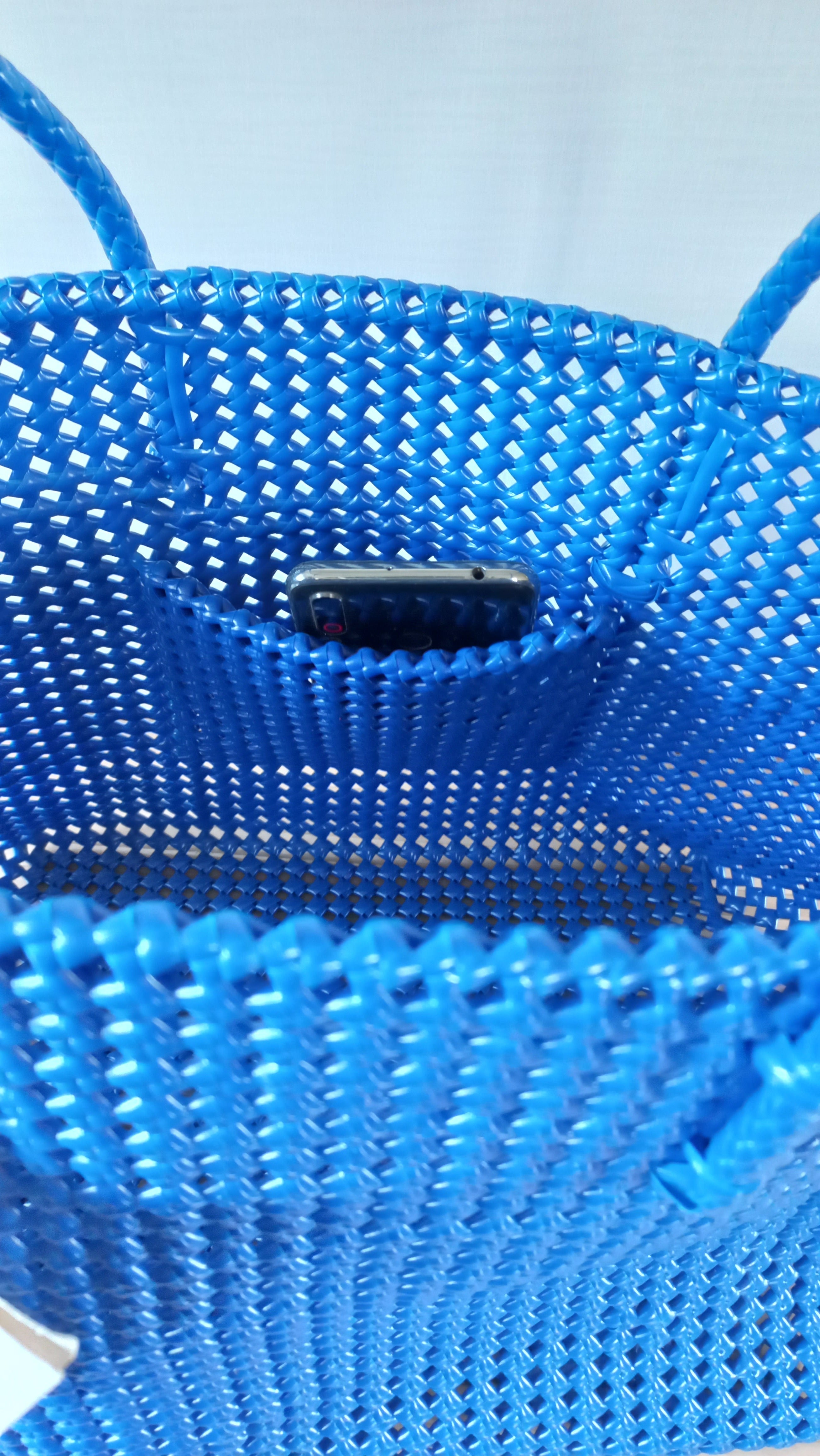 大きいサイズには、携帯が入るポケット付きです。