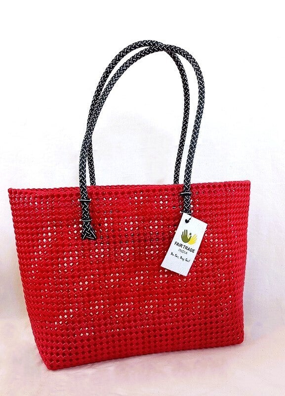 赤ベースに黒x白 持ち手を追加させていただきました。