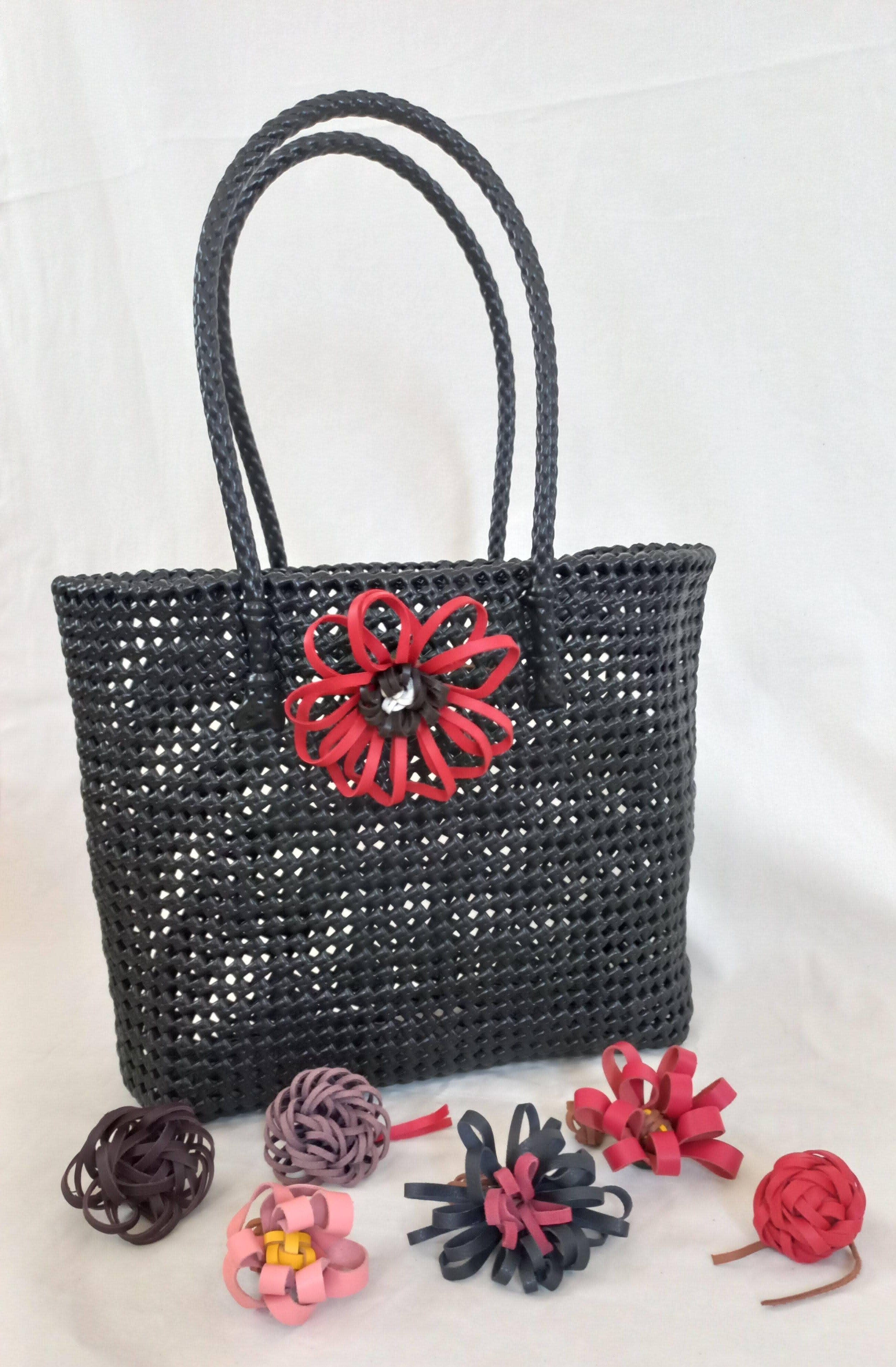 そして、付加価値を付けた本革アップサイクリングーコサージュ付きバスケットも追加しました。