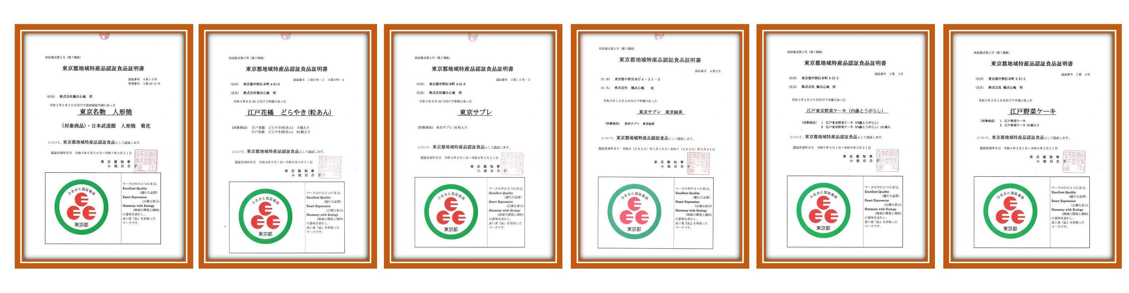 東京産食材という地産・地消製品の製造で、「東京都地域特産品認証食品」の認証を授与いただきました。