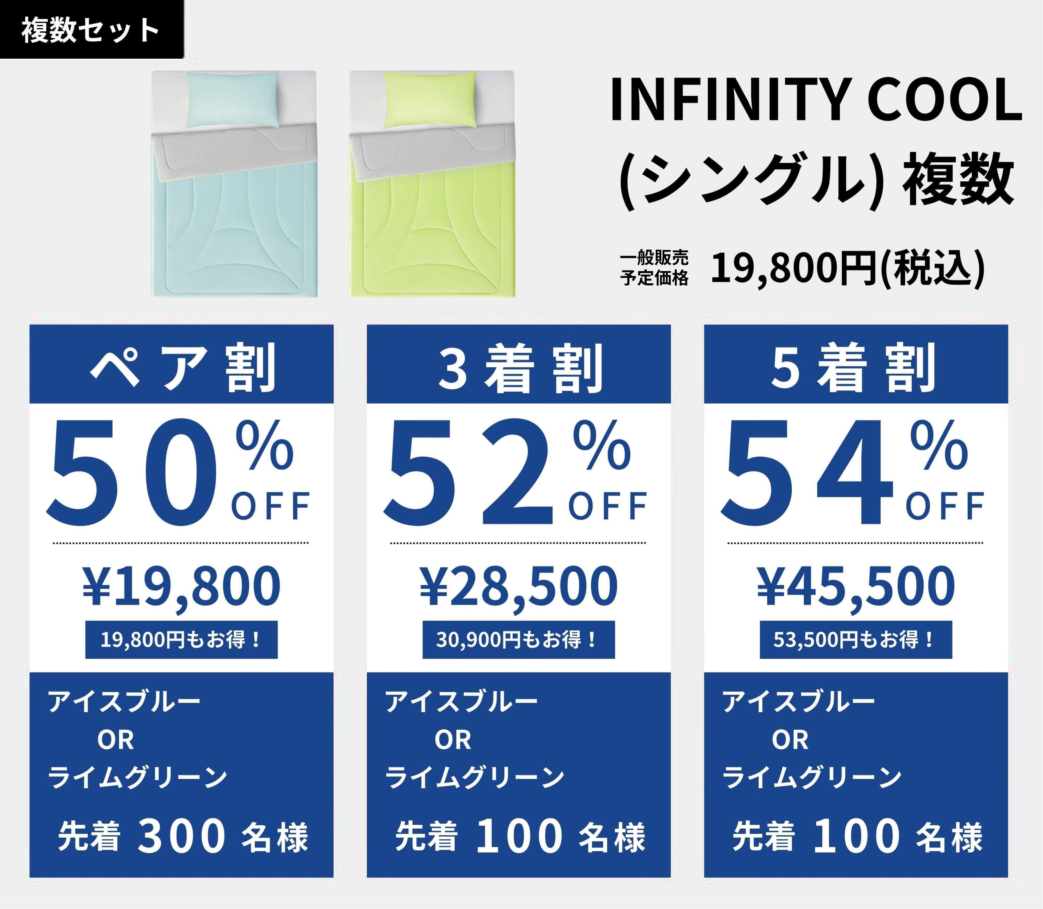 「INFINITY COOL」は、暑い夏の夜も快適に過ごせる理想の寝具です。お客様の声を大切にし、今後も更なる進化を追求してまいります。どうぞ、心地良い夏の夜を「INFINITY COOL」でお過ごしください。