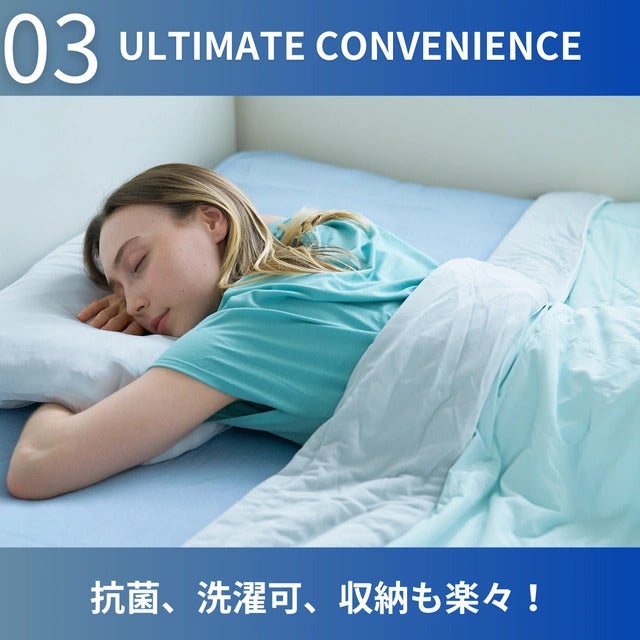 「INFINITY COOL」 冷感掛け布団は、コンパクトで簡単に収納できるサイズが魅力!アウトドアでも快適な睡眠をサポート。