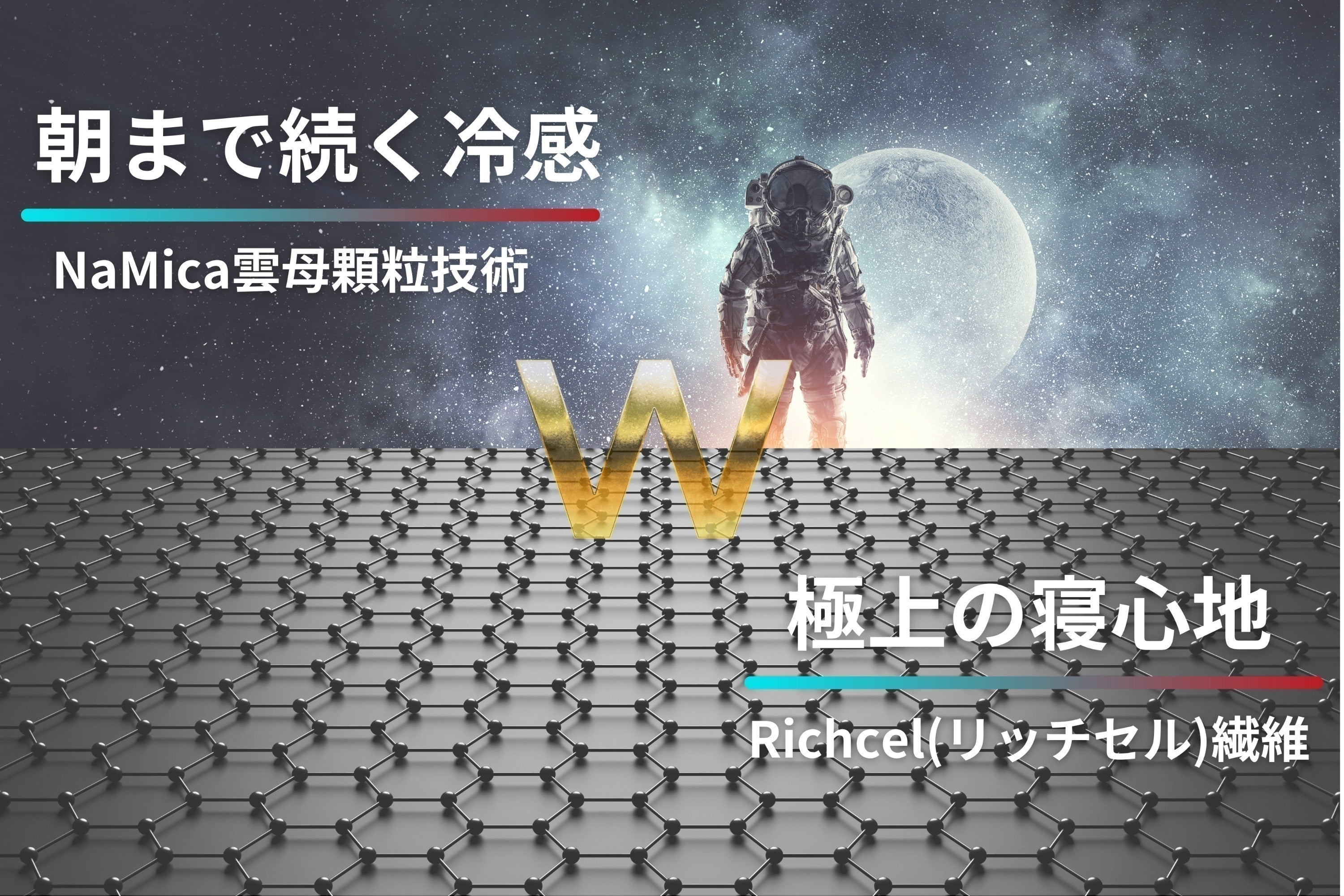 ①NaMica雲母粒子技術を採用し、朝まで続く冷感!