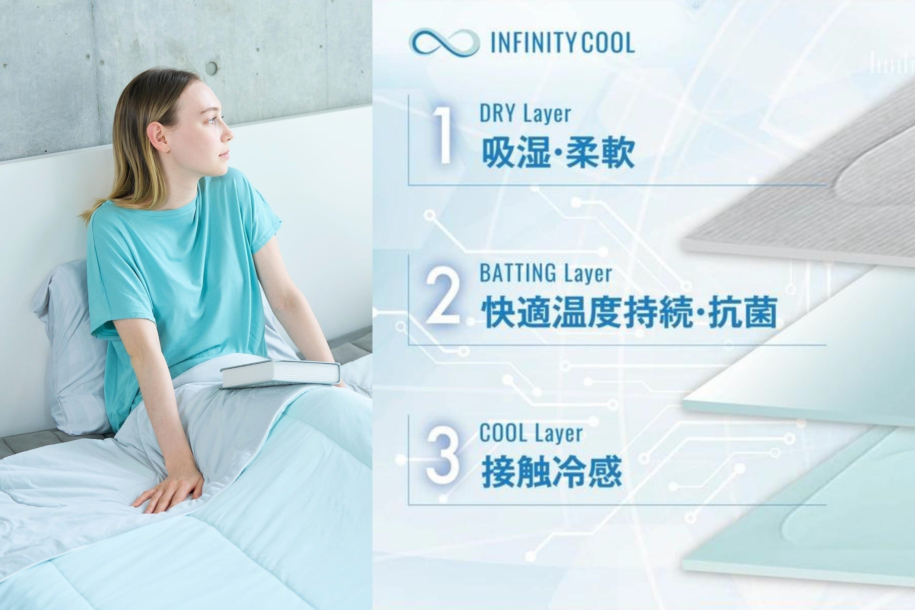 「朝まで続く快適冷感」、「爽快な寝心地」、「お手入れの簡単さ」の3大要素がそろった冷感掛け布団「INFINITY COOL」で、理想な睡眠体験を〜