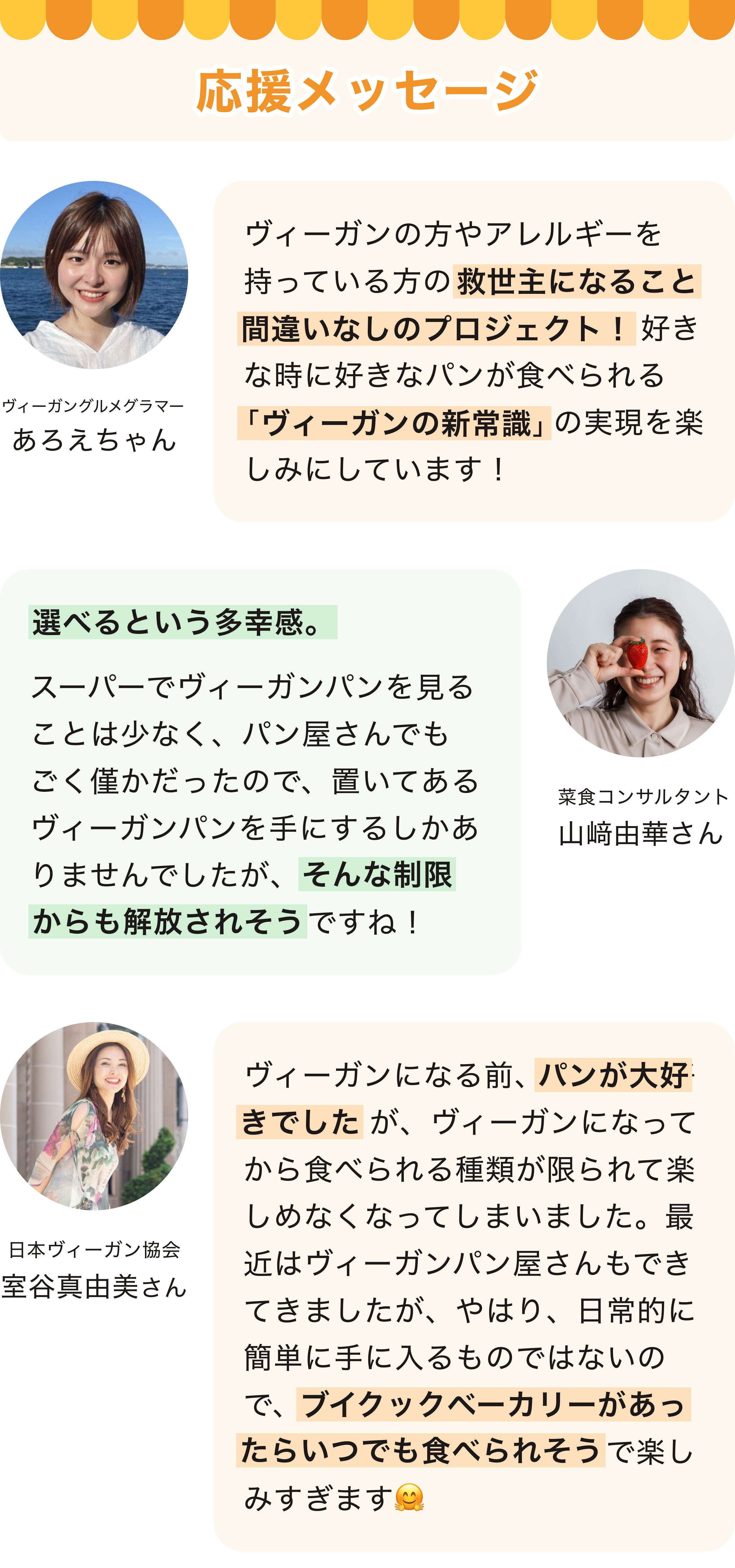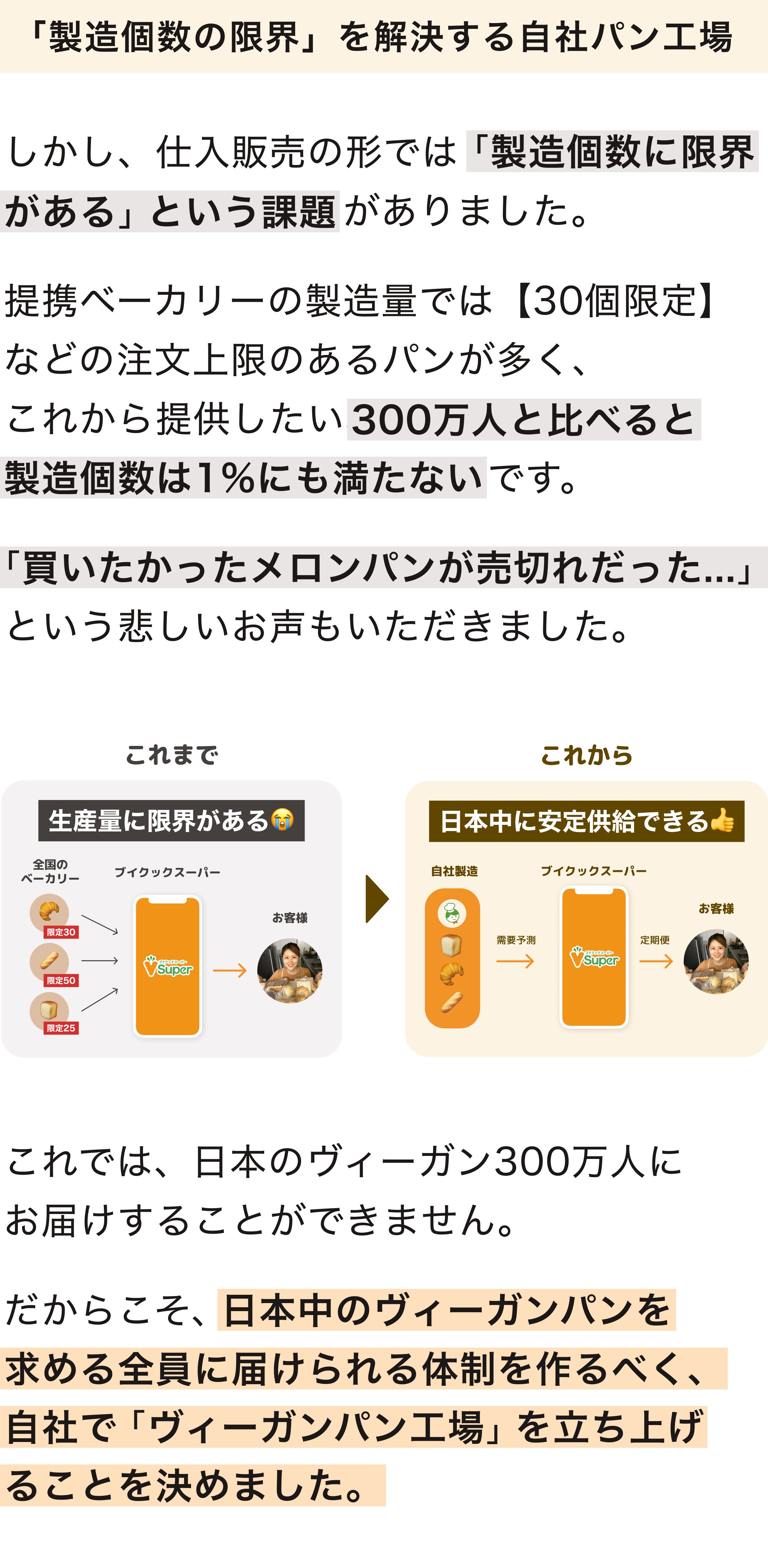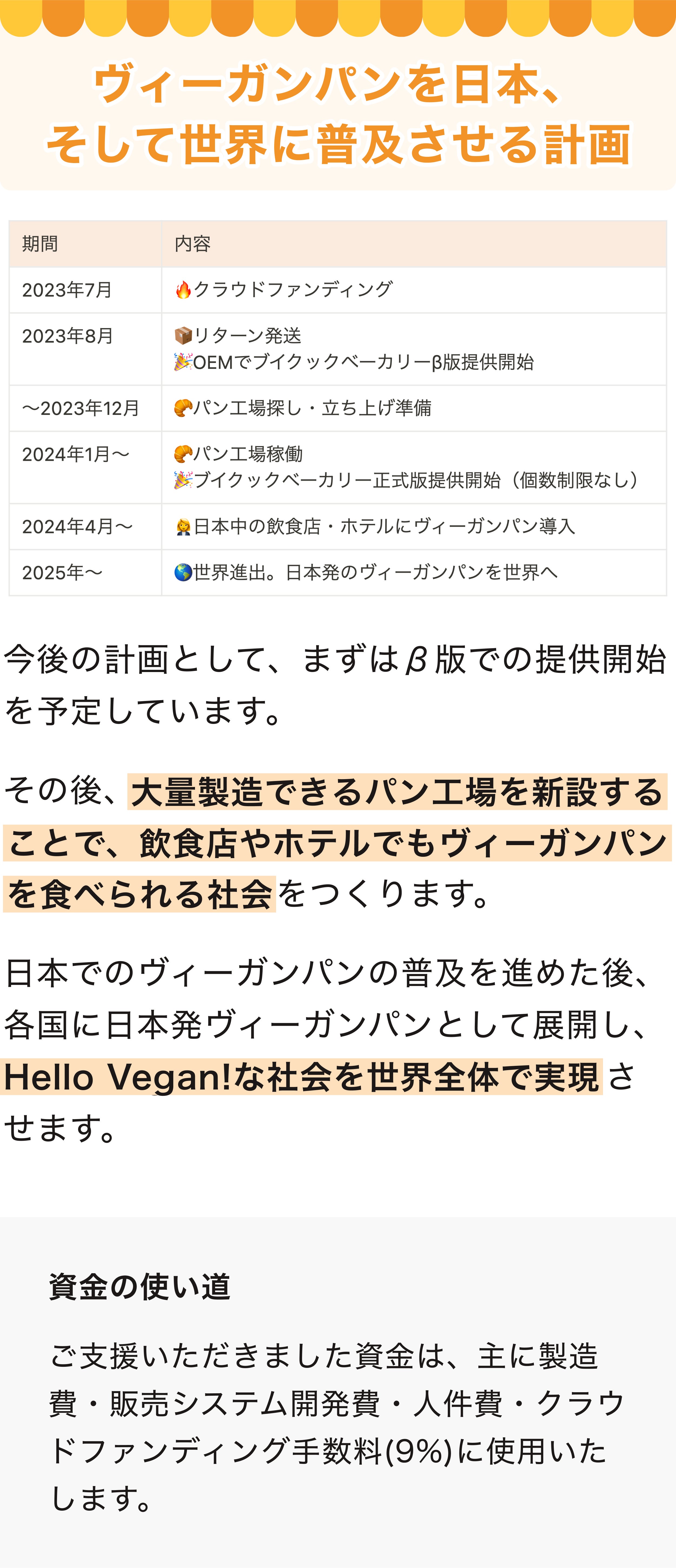 2023/07/16 21:45ヴィーガンパンの工場&定期便「ブイクックベーカリー」のクラウドファンディング、終了まで残り1週間となりました!開始から約2週間で、221名にこのプロジェクトに共感いただけたこと、そして本当に多くのシェアのご協力をいただけてこと、改めて感謝です。ありがとうございます。開始から2週間、現在の結果・支援金額:1,339,038円・支援者数:221人・達成率:77%これだけ多くの方に、ヴィーガンパンを求められていること、そしてヴィーガンでも"当たり前"にパンのある日常を取り戻すことに共感いただけたことに、すごく励みになっています。クラウドファンディングを始める前に抱いていた課題感が「間違っていなかった」と確信にいたりました。日本全国のヴィーガン300万人をはじめ、フレキシタリアンや興味のある方々が、手軽にヴィーガンパンを食べられる社会を実現させるために、最後までにプロジェクトを走り切ります。残り7日間で、あと23%です。僕たちブイクックからアプローチできる方々には届けきり、あとは皆様のSNSなどでのシェアで、さらに多くの人に知っていただけるかどうかが鍵になります。クラウドファンディング開始から、多くの方々にSNSでシェアのご協力いただき、本当にありがとうございます。残り1週間。僕たちと一緒に"ヴィーガンパンのある日常"を取り戻すために、SNSでの発信のご協力をお願いします。また、その際はブイクックスーパーのInstagramアカウント(@vcooksuper_vcook)へのメンションも、ぜひお願いします。そして、最後に嬉しいコメントをご紹介させてください。たくさんの応援と期待のコメントに胸があつくなって、同時に「絶対にやり切るぞ」と気が引き締まっています。素敵なコメントをくださったみなさん、本当にありがとうございます!ここに掲載できなかったコメントもたくさんあるので、ぜひコメント一覧をご覧ください。今回の「ブイクックベーカリー」クラウドファンディングは、100名以上の応援団の方々と一緒に、公開前から作り上げてきました。まだまだ応援団を募集しておりますので、「一緒に最後1週間を盛り上げたい!」という方は、LINE OpenChatにご参加いただけると嬉しいです。匿名で参加できるので、ぜひ参加いただき一緒に「ブイクックベーカリー」を世の中に知らしめてください...!▶︎ブイクックベーカリー応援団(LINE OpenChat) もっと見る