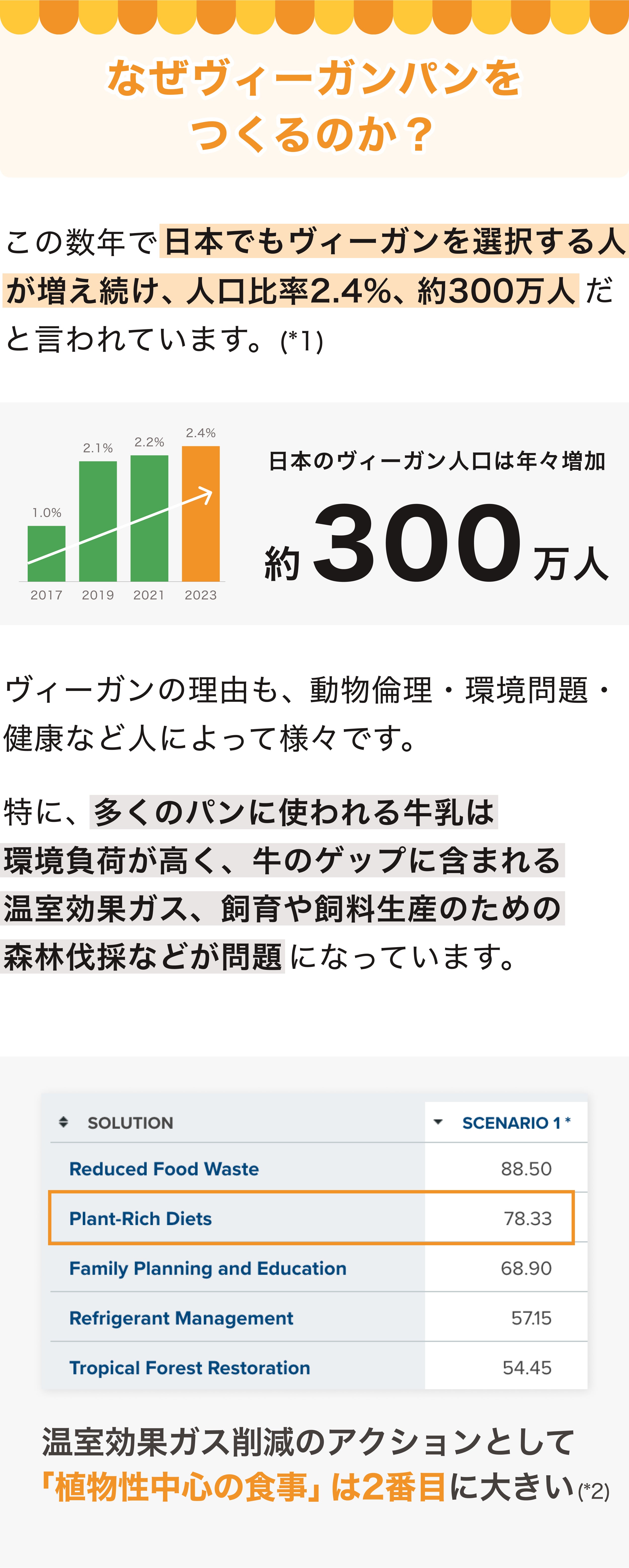 *1.日本のベジタリアン・ヴィーガン・フレキシタリアン人口調査 by Vegewelよりヴィーガン率2.4%