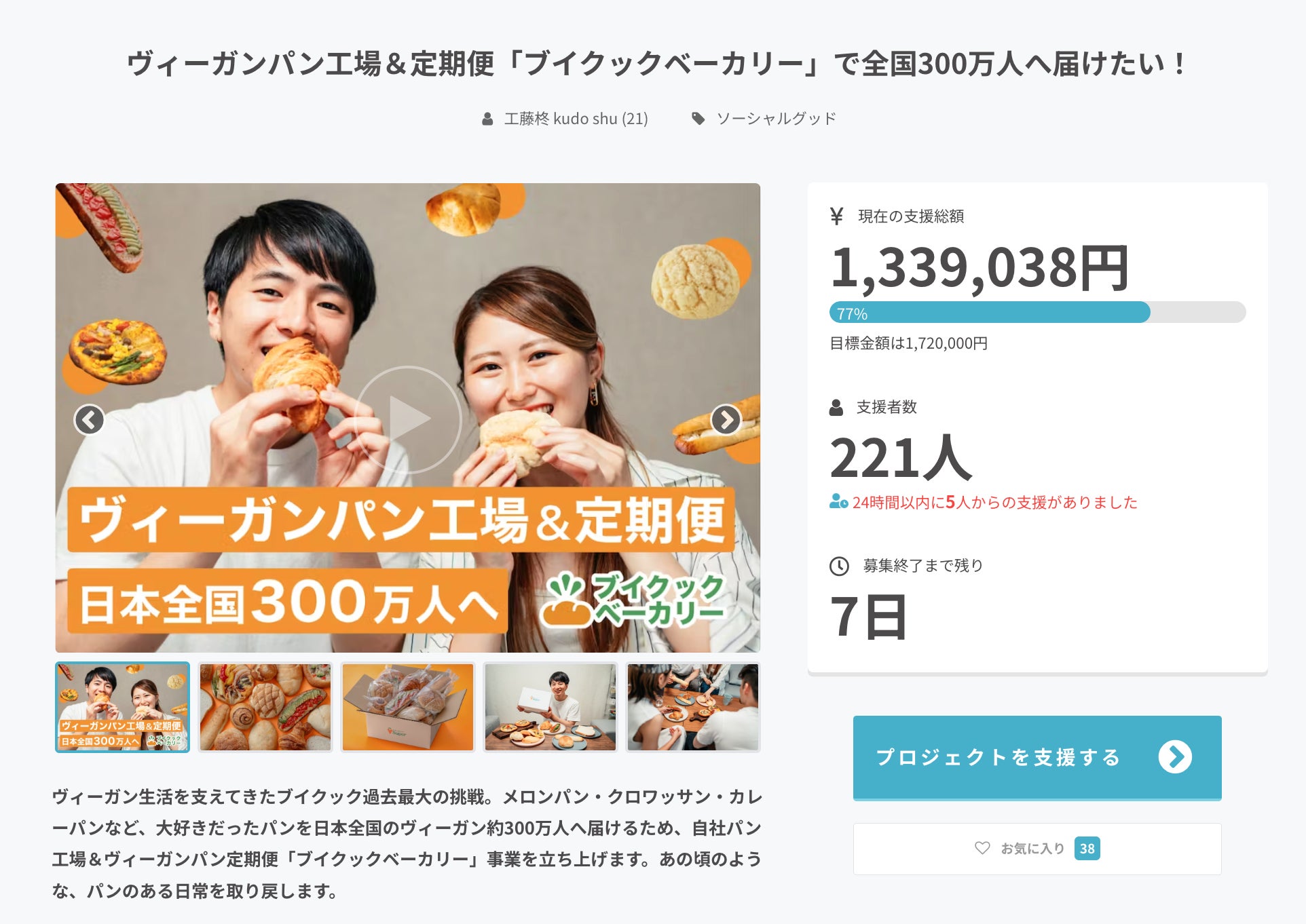 ヴィーガンパンの工場&定期便「ブイクックベーカリー」のクラウドファンディング、終了まで残り1週間となりました!