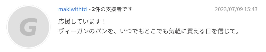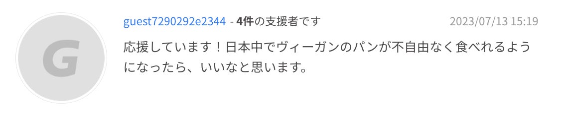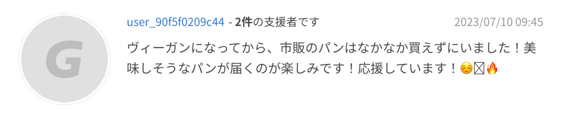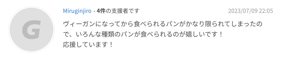 これだけ多くの方に、ヴィーガンパンを求められていること、そしてヴィーガンでも"当たり前"にパンのある日常を取り戻すことに共感いただけたことに、すごく励みになっています。