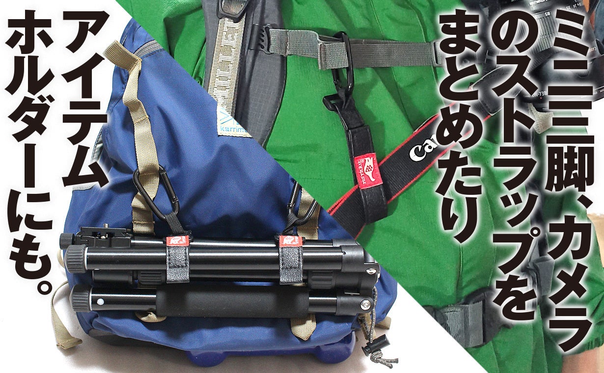 ポール用のループやポケットが無いリュックへの装着に使えるベルトです。